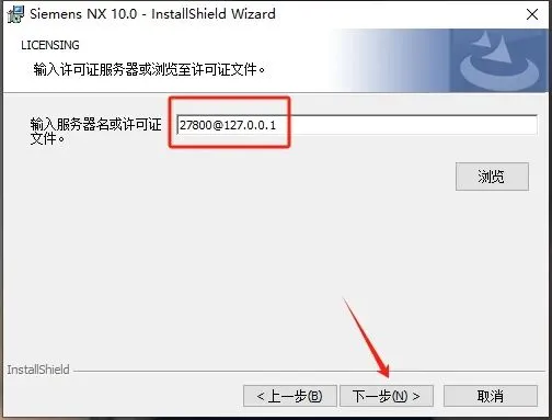 20、许可证文件输入:27800@127.0.0.1,再点击【下一步】。