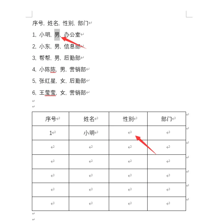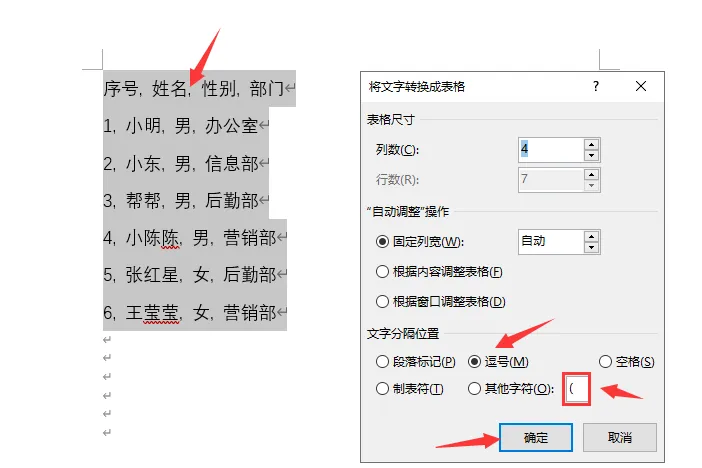 确认无误后,轻点确定,Word便会迅速将文本内容批量填充至表格中,整个过程既迅速又无误。