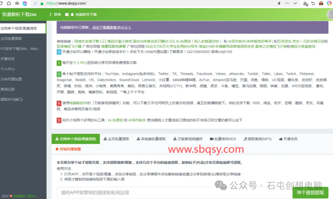 抖音、快手、火山、皮皮虾、微视、西瓜、头条、小红书、支持80多个平台无水印批量下载工具,视频去水印在线解析工具–抖音快手视频去水印解析网址:http://www.sbqsy.com(SB去水印很好记)备用网址2:http://zss.hhmvid.com3:公众号:sb去水印(复制网址到浏览器打开,即可无水印批量解析下载视频)点击可以查看高清图。