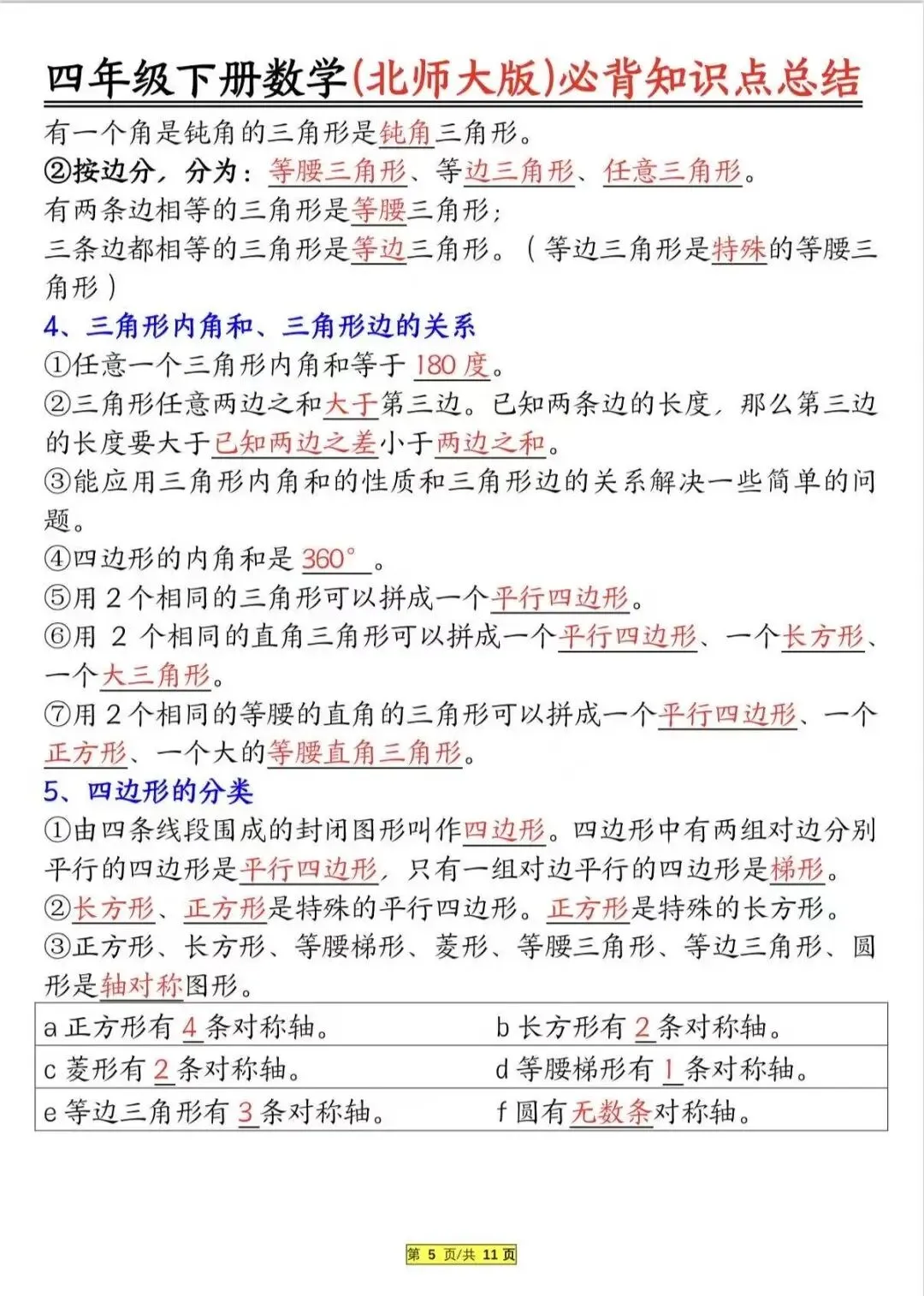 26春北师大版四年级下册数学《期末复习·全册必背知识点总结》| 完整PDF可打印