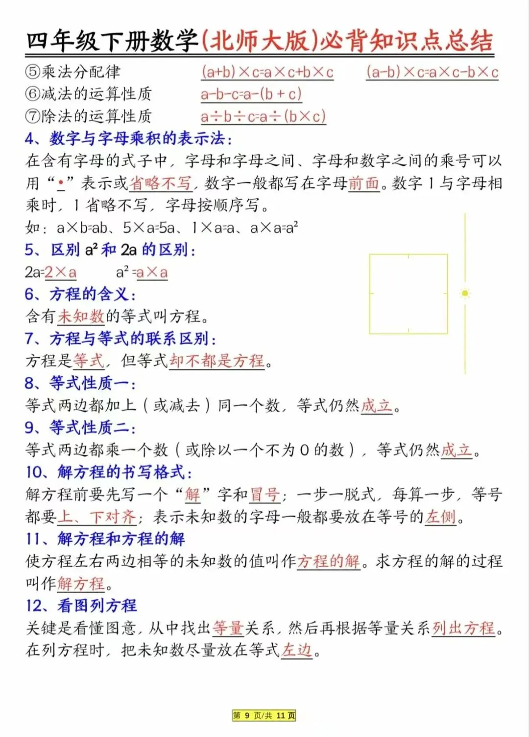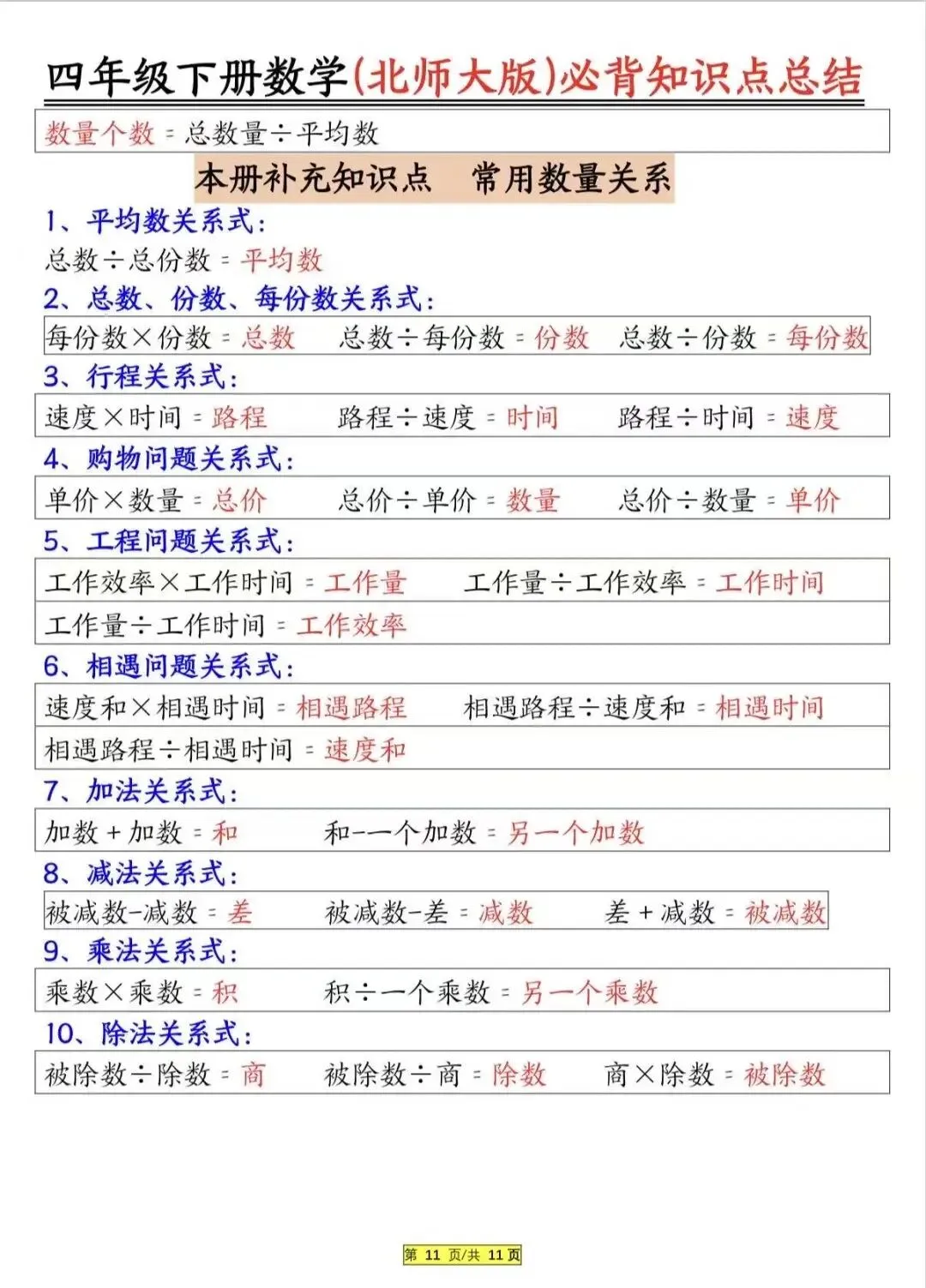 大家好我是提优补差;今天跟大家分享的是;26春北师大版四年级下册数学《期末复习·全册必背知识点总结》| 提供电子版,支持打印和下载。