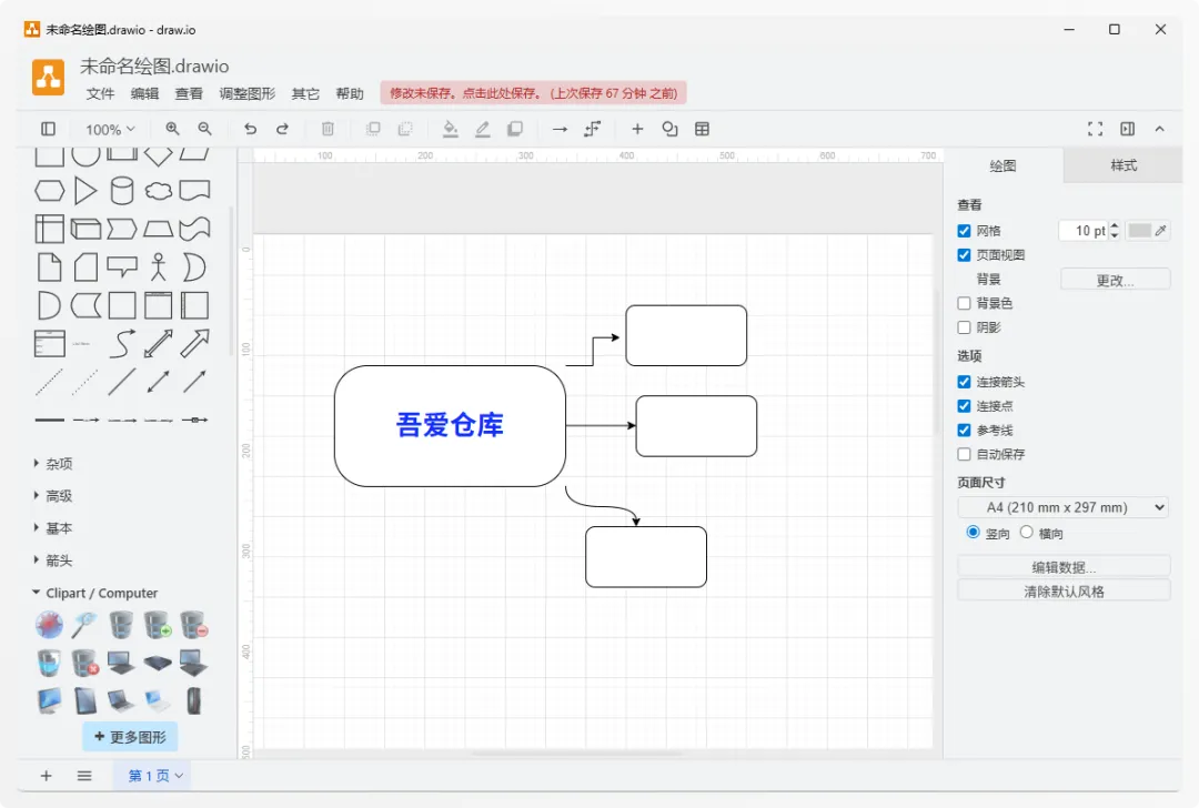 一款广受全球用户信赖的免费开源的流程图制作软件,界面清爽无广告、无需登录打开即用,不收集用户数据。却能轻松创建流程图、网络拓扑图、组织架构图、平面布局图等数十种专业图表。这款软件再Github上已经获得59.6K Star,可见这款软件是有多热门。
