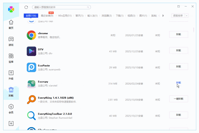 在卸载模块中找软件即可卸载,卸载完成后如果还有残留的垃圾,就可以强力删除掉。
