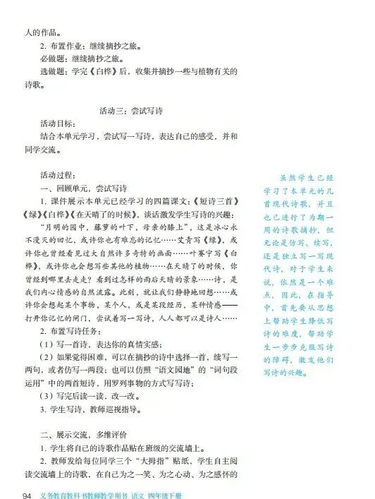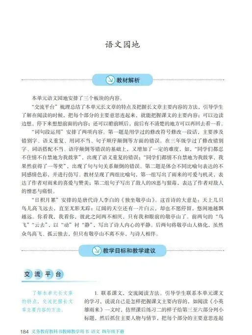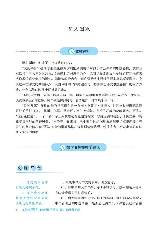 统编小学语文四下教师教学用书(高清电子版)