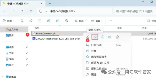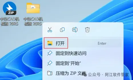 先将 中望CAD机械版 2025 安装包 下载到电脑本地,右键选择【解压到 中望CAD机械版 2025\】。