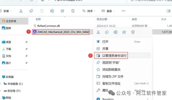 找到【ZWCAD_Mechanical_2025】安装程序,右键选择【以管理员身份运行】。