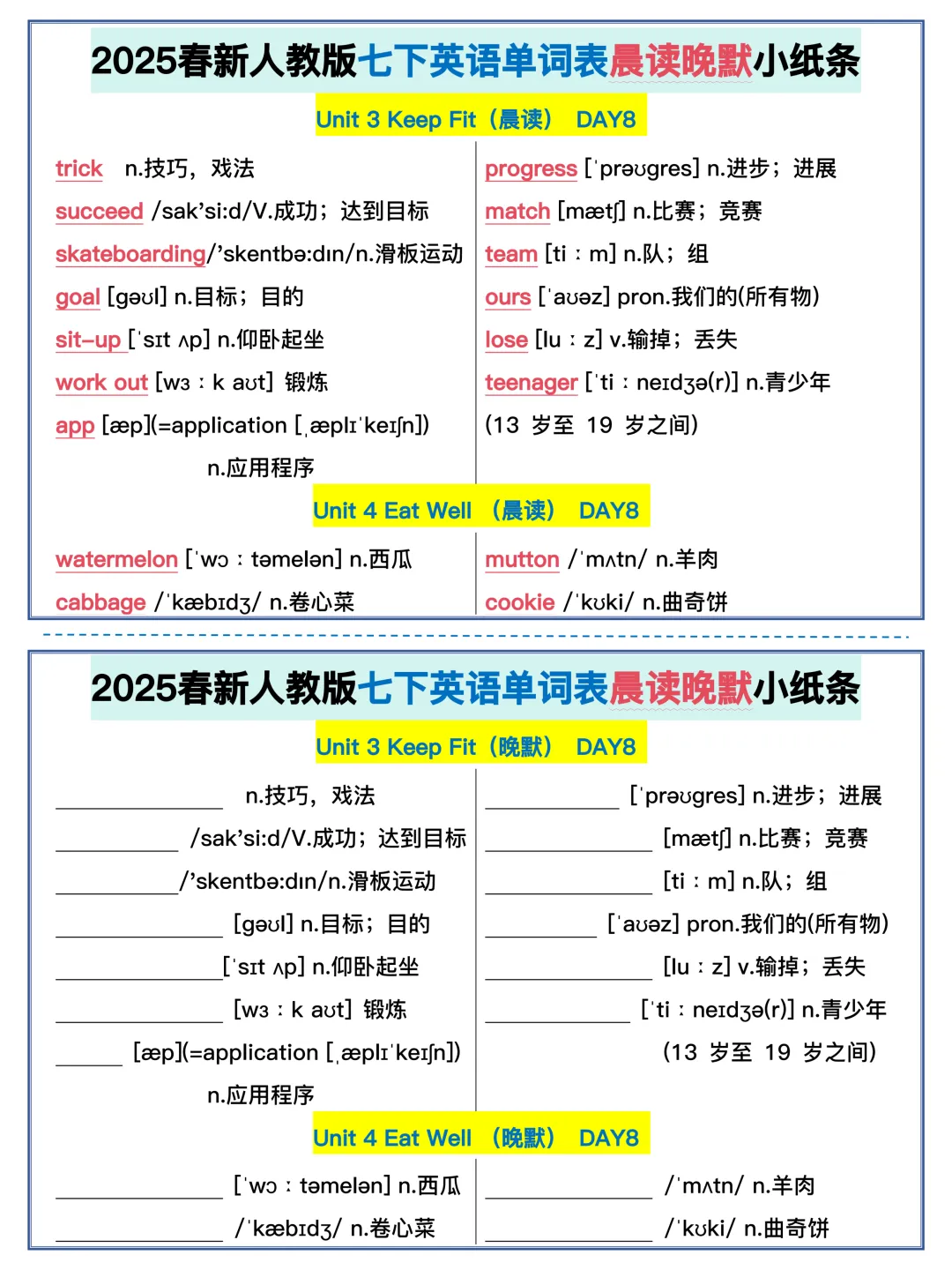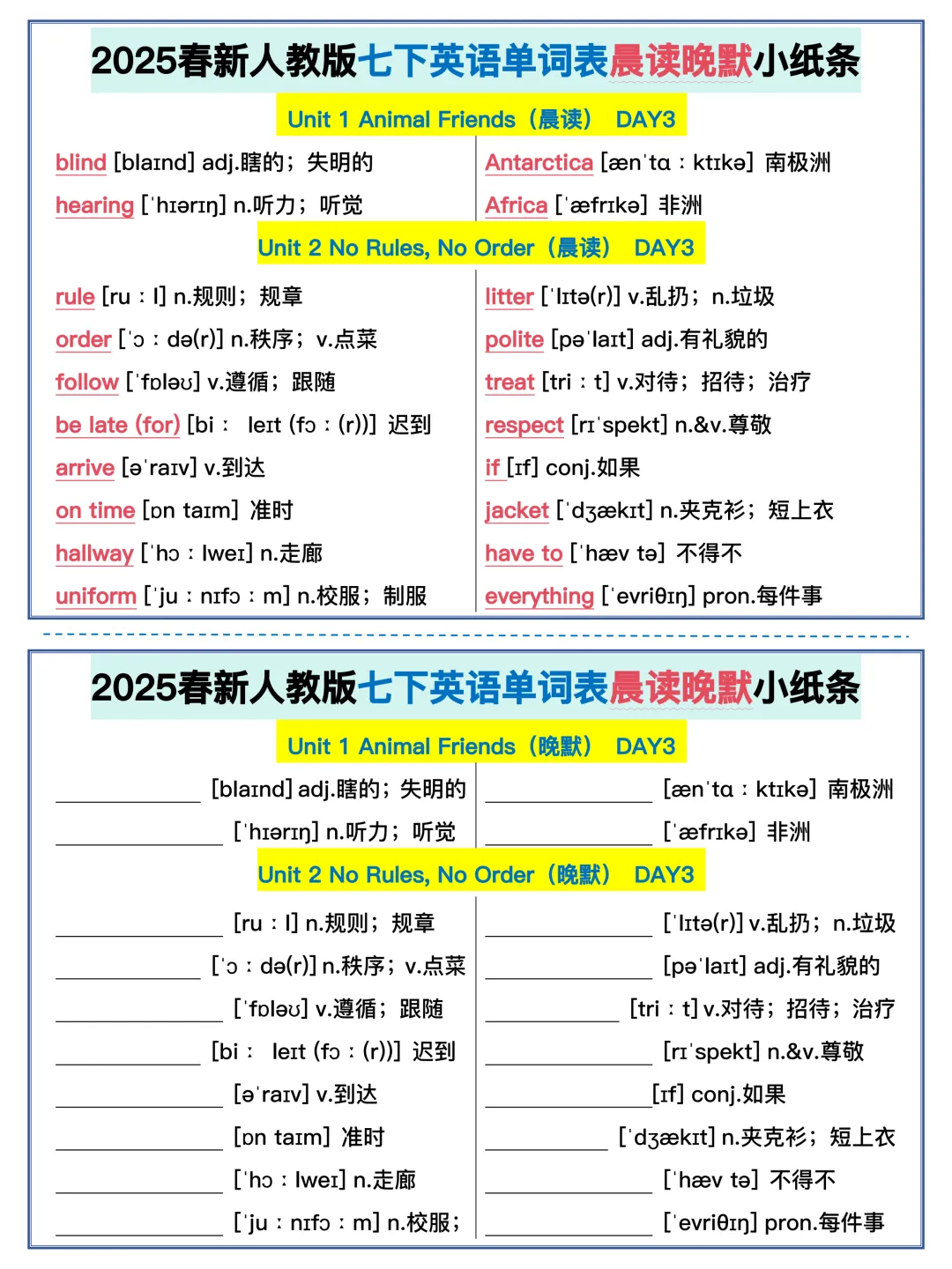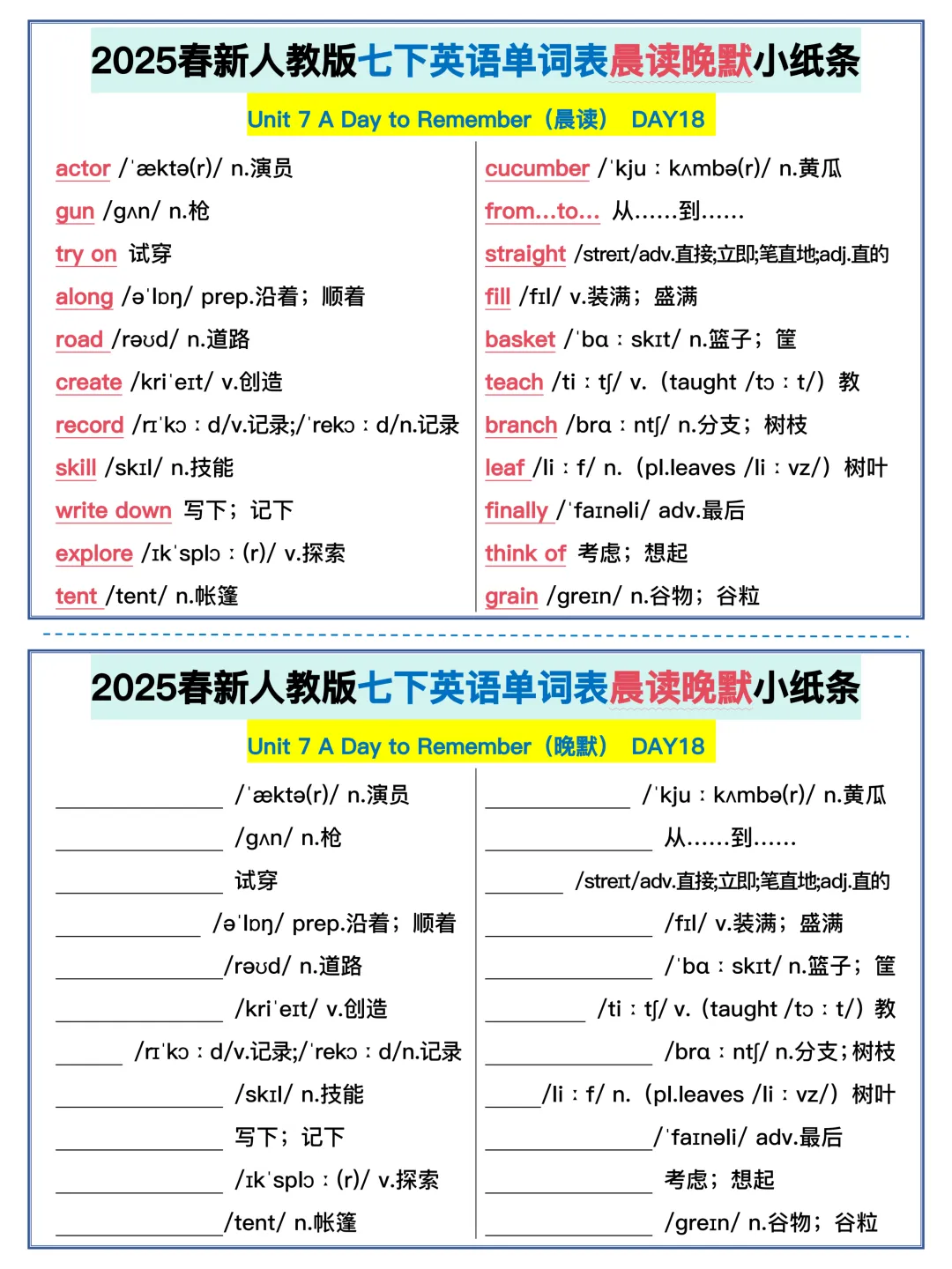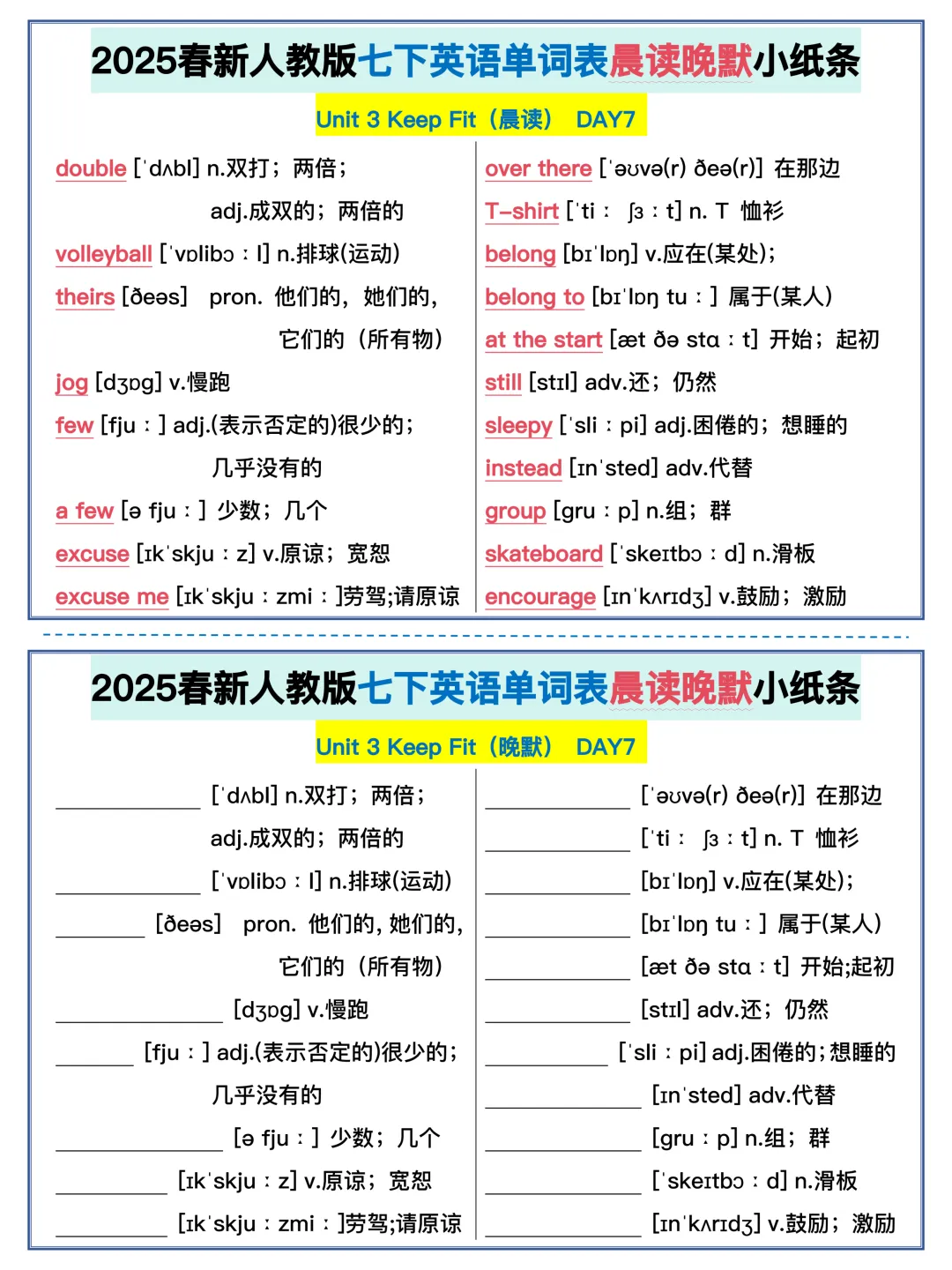 22天背完新人教版七年级下册单词(全,可打印)