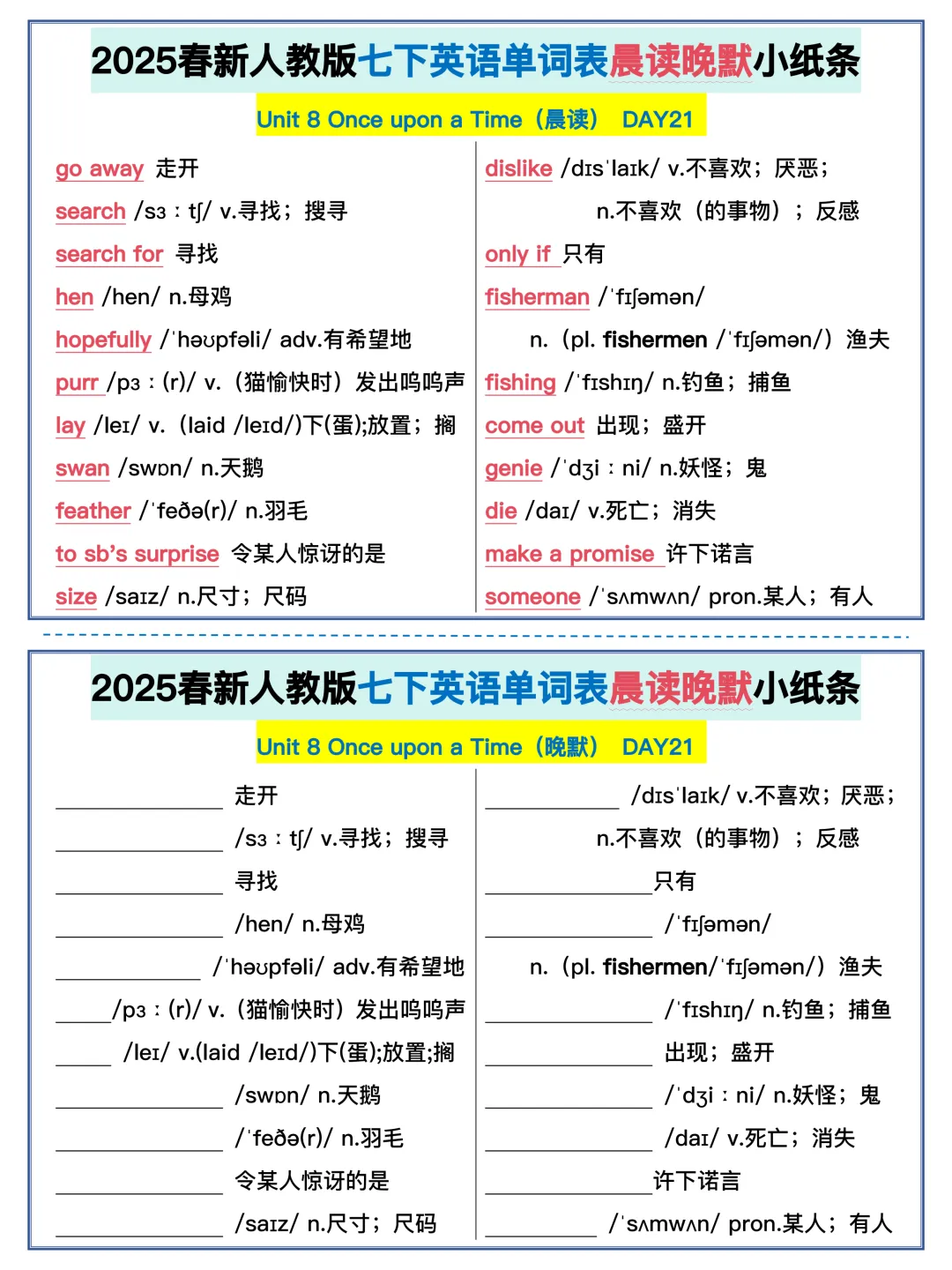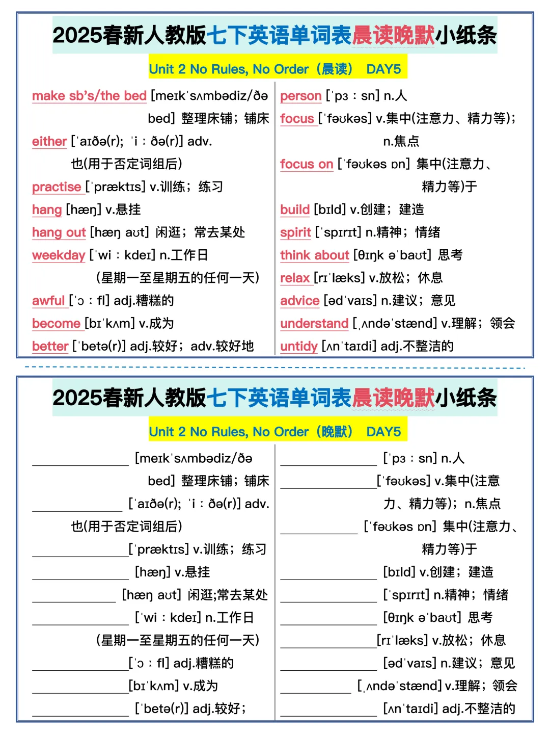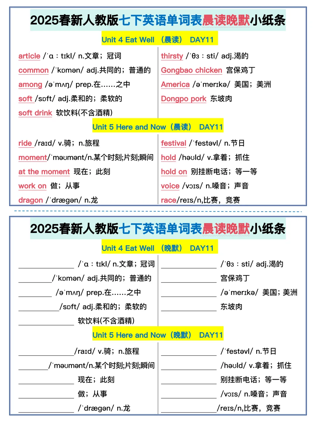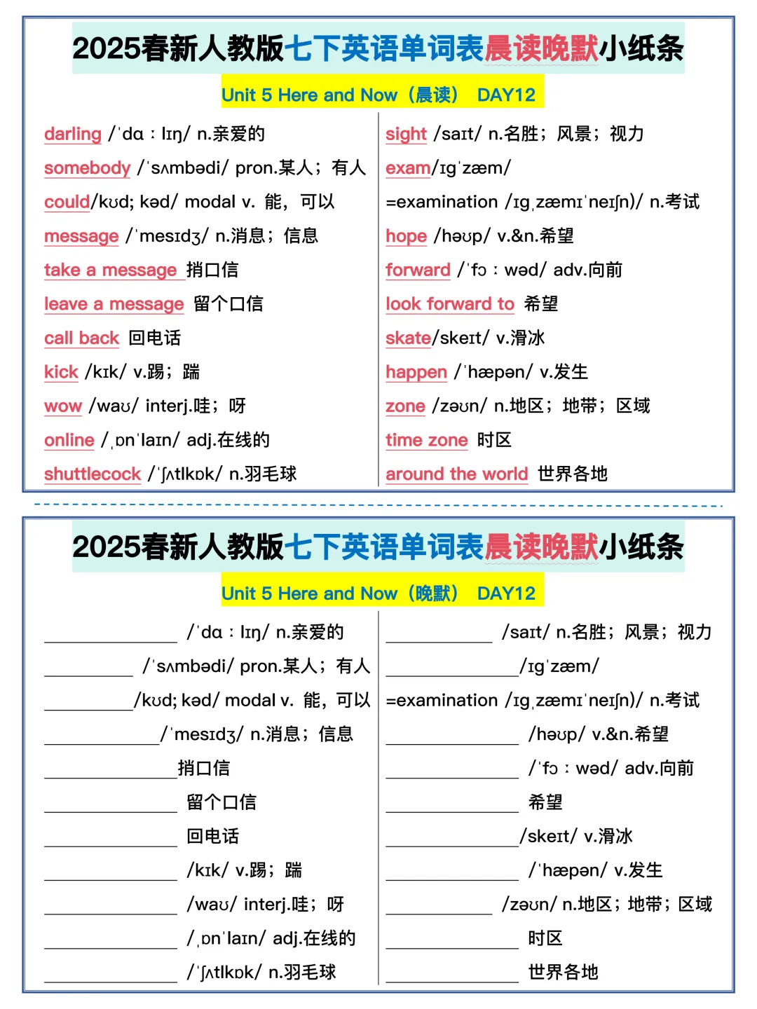 22天背完新人教版七年级下册单词(全,可打印)