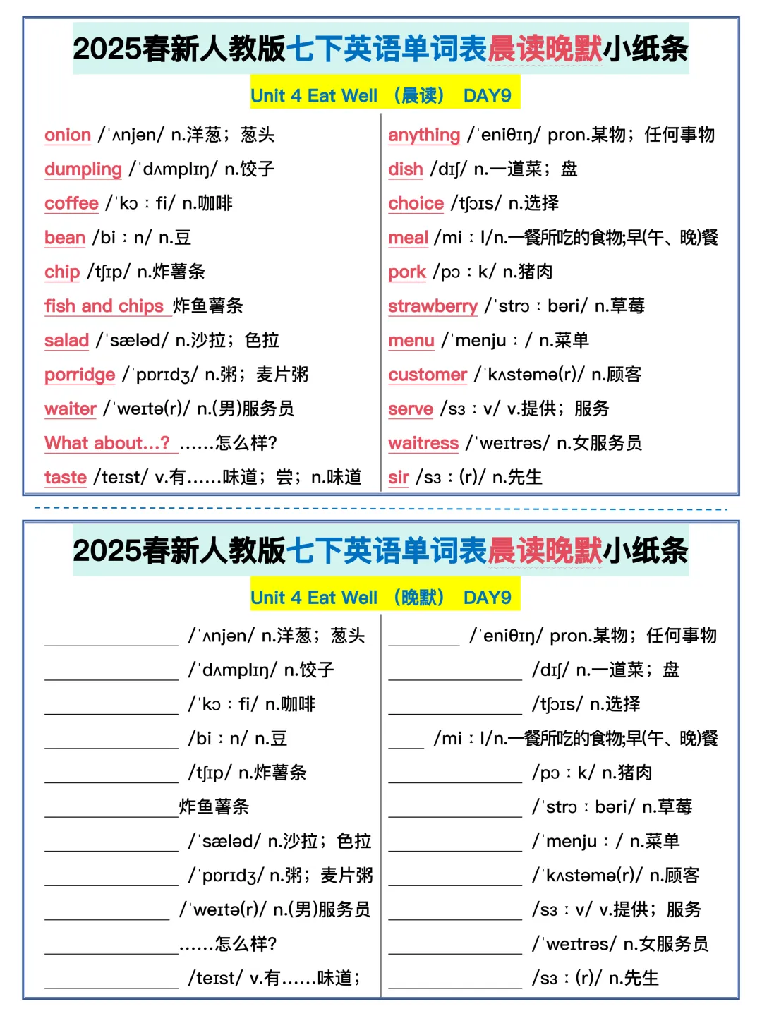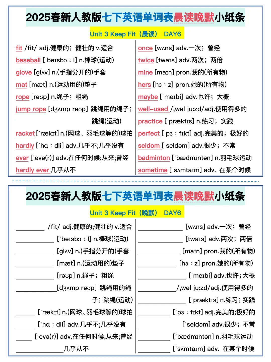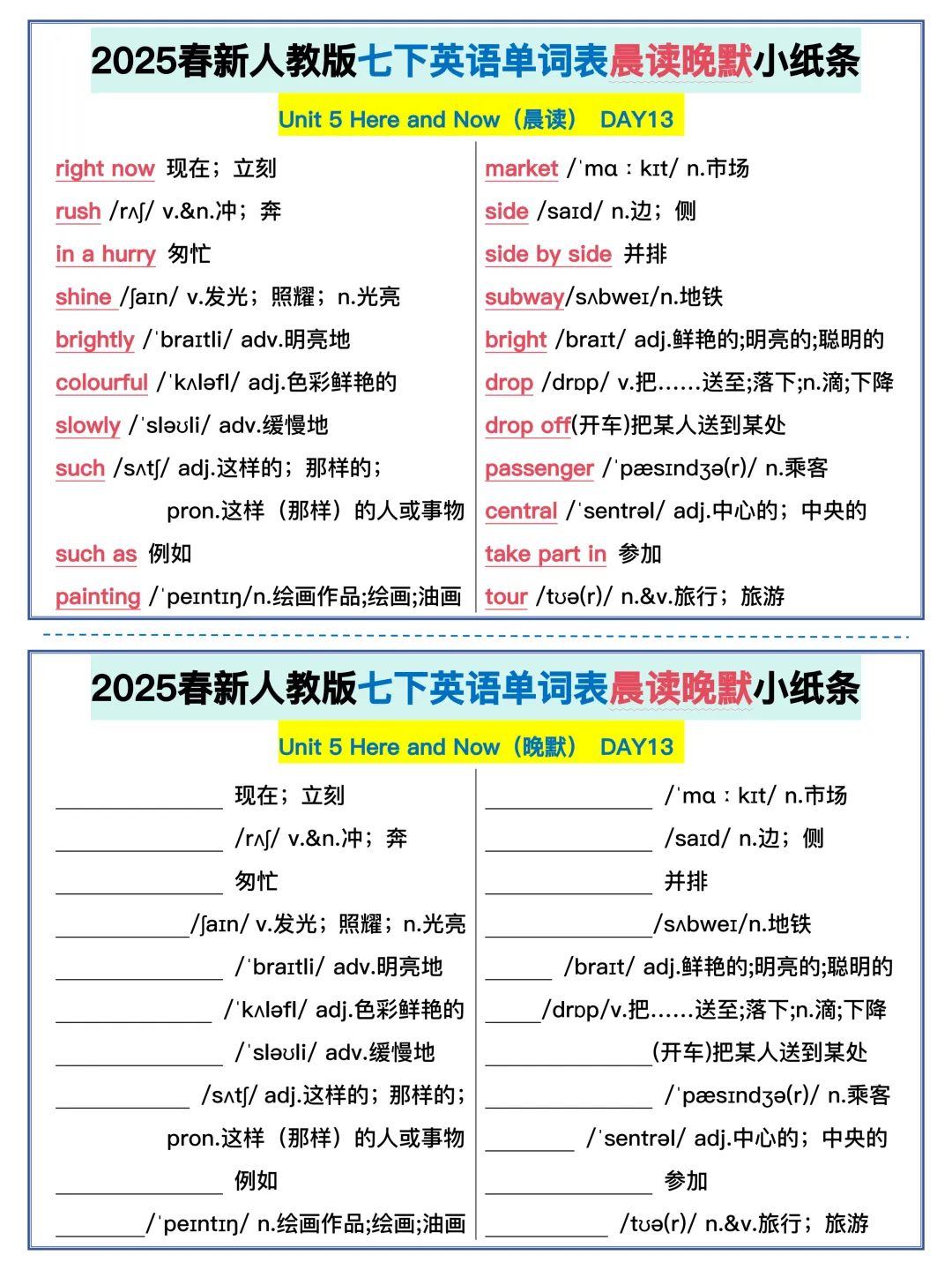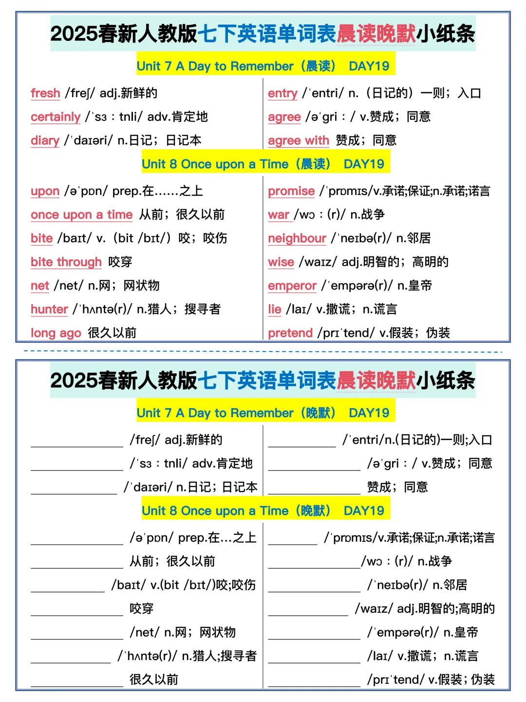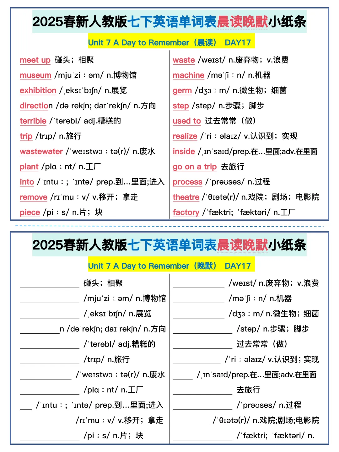 22天背完新人教版七年级下册单词(全,可打印)