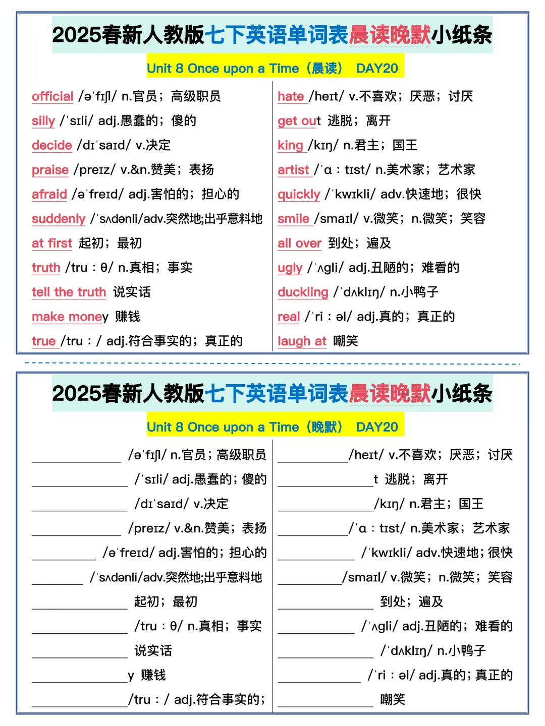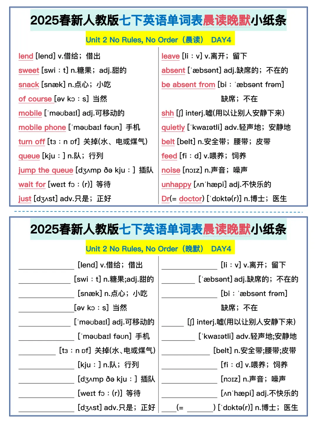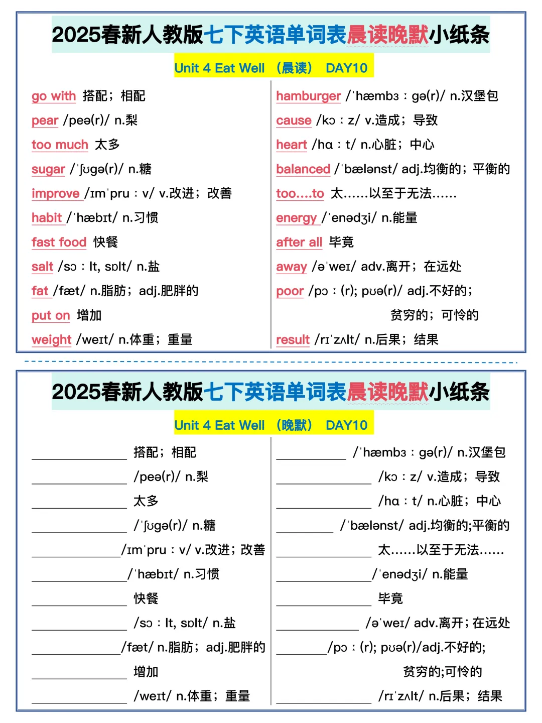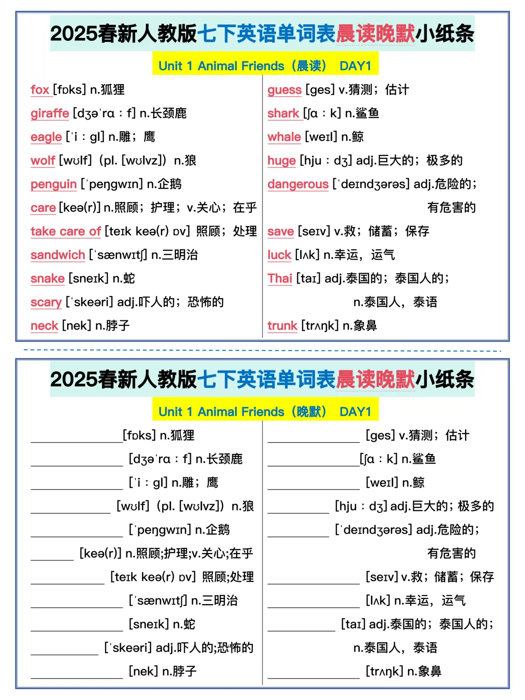22天背完新人教版七年级下册单词(全,可打印)