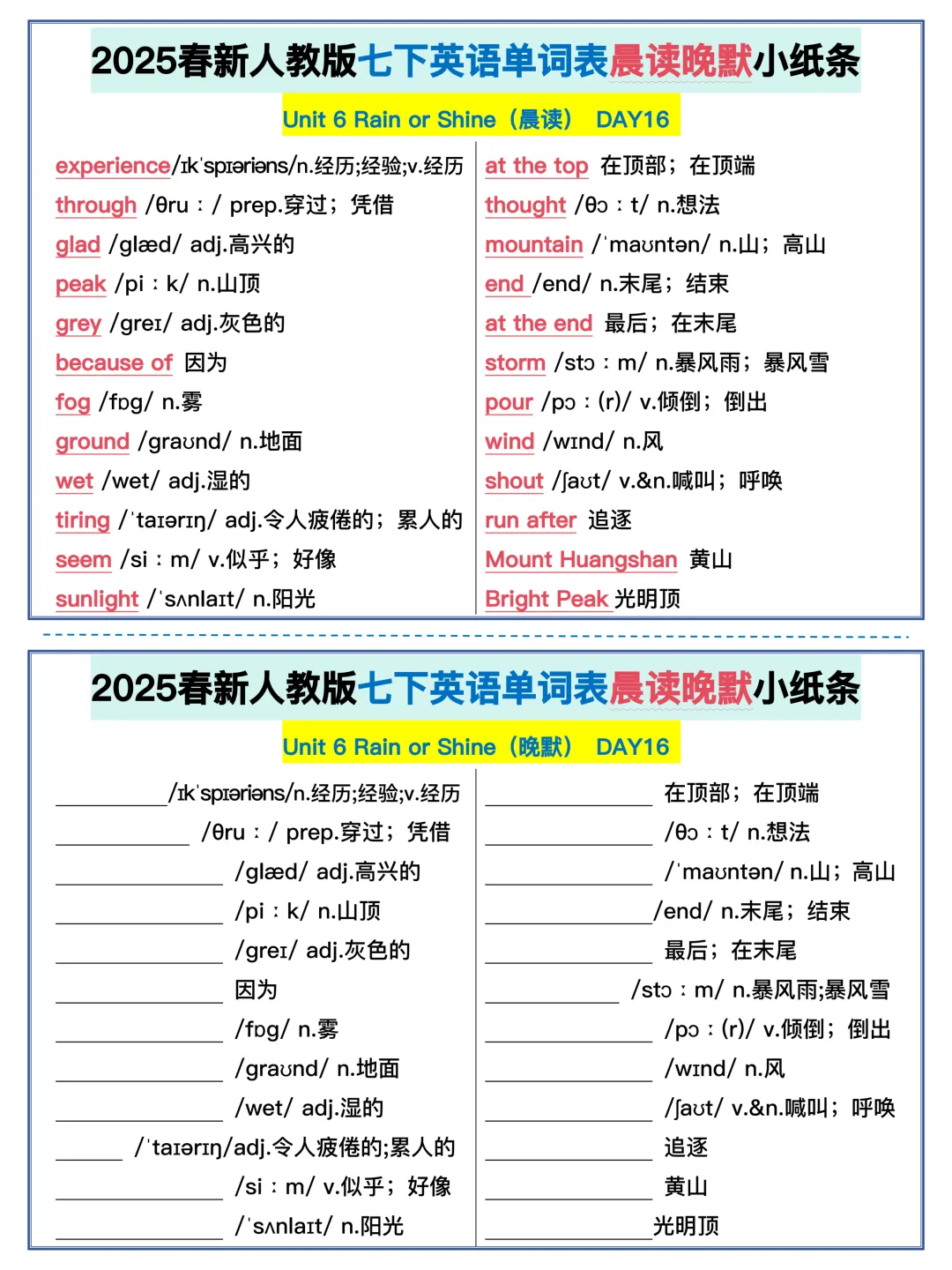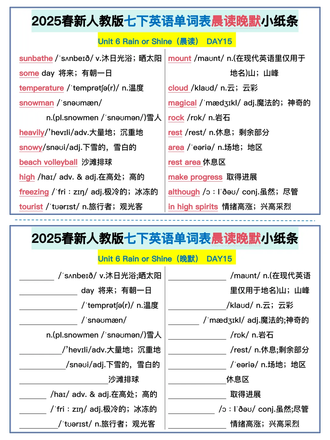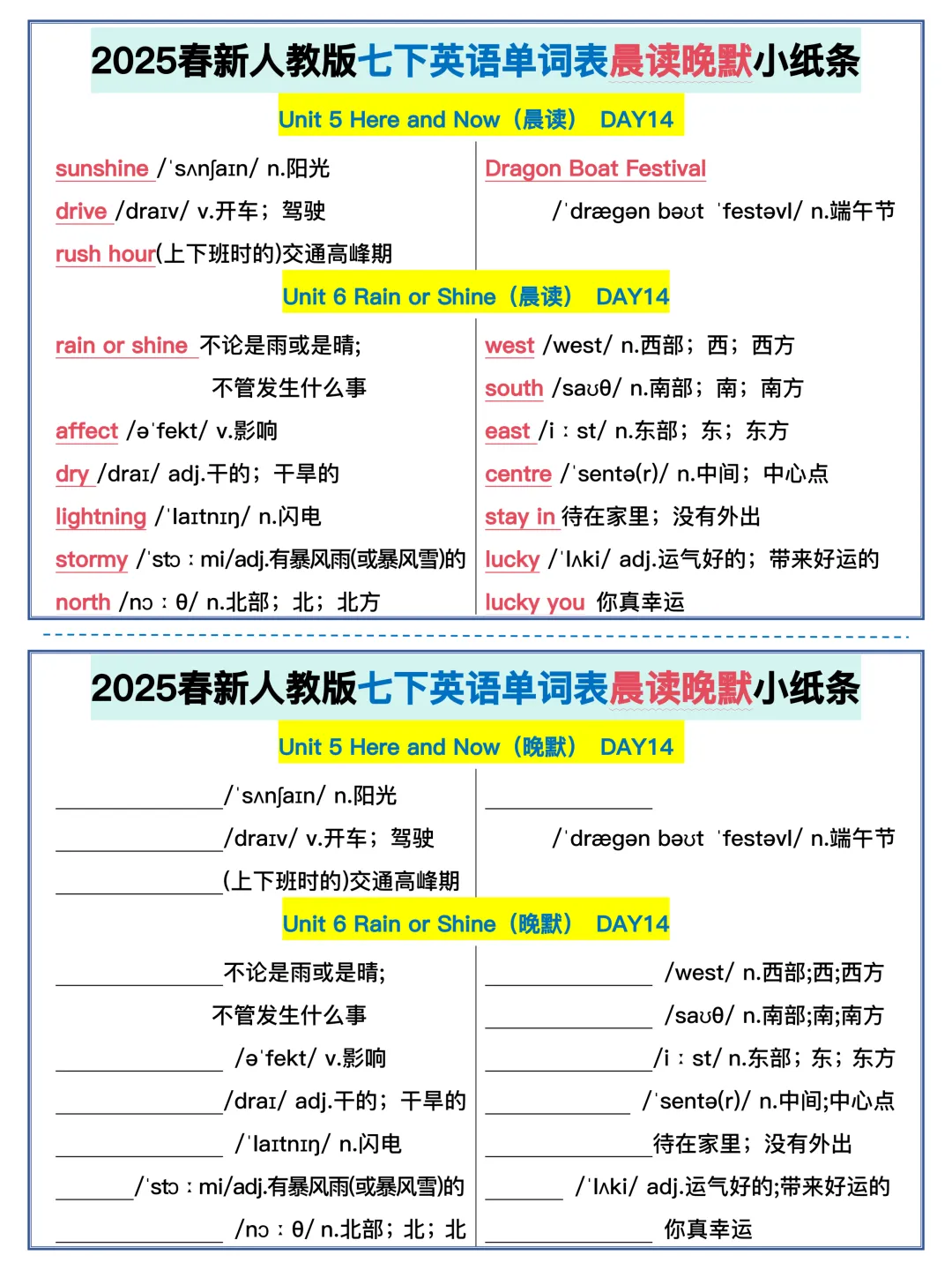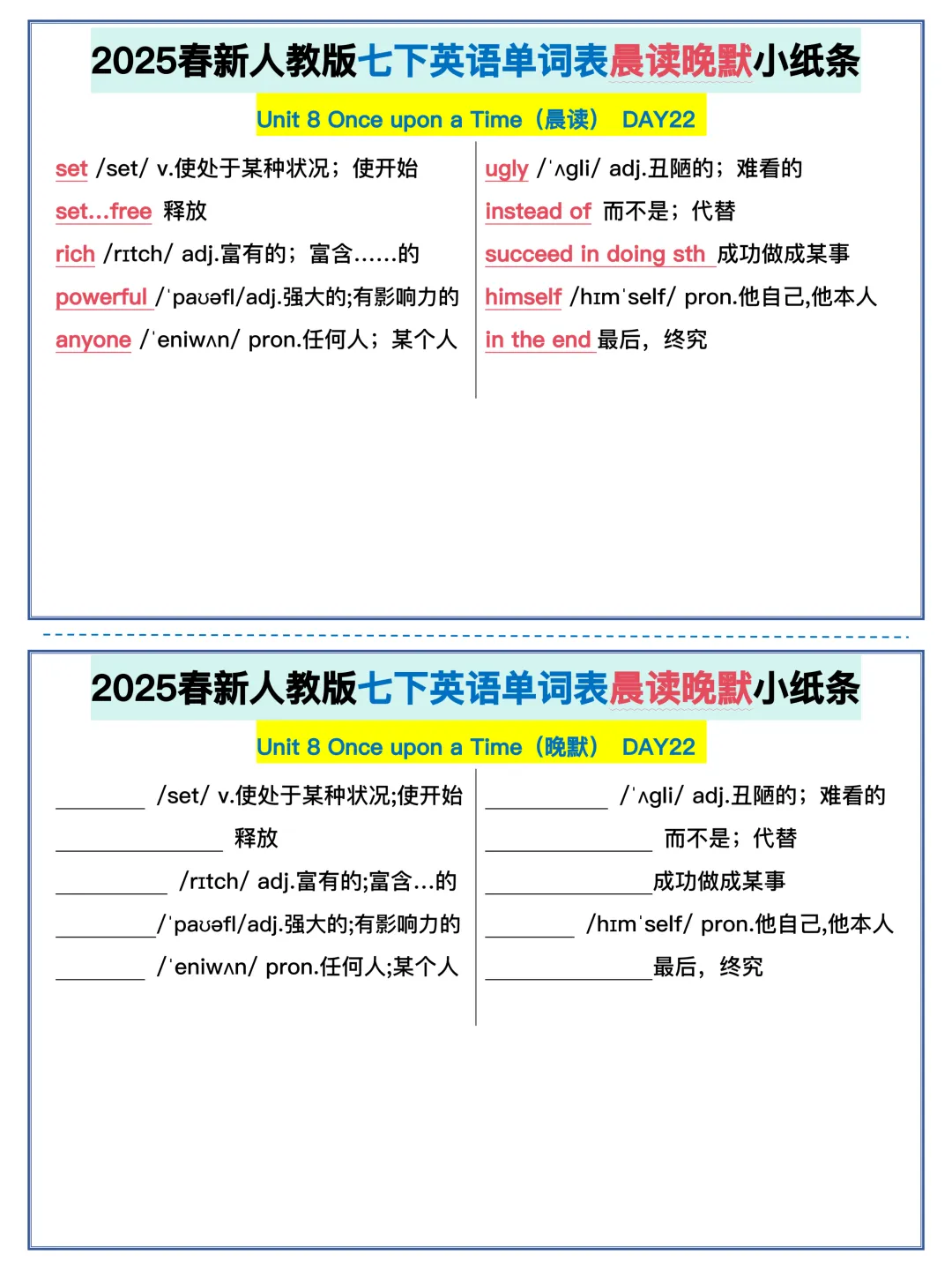 22天背完新人教版七年级下册单词(全,可打印)