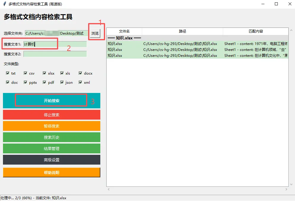 输入关键词 → 在”搜索文本1″里打你要找的词(比如”计算机”),还能在”搜索文本2″再打一个词(比如”19″)