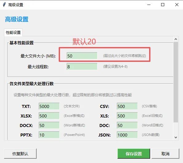 搜大文件有点慢? 可以在”高级设置”里调快点(默认设置20M搜索速度还是可以的)