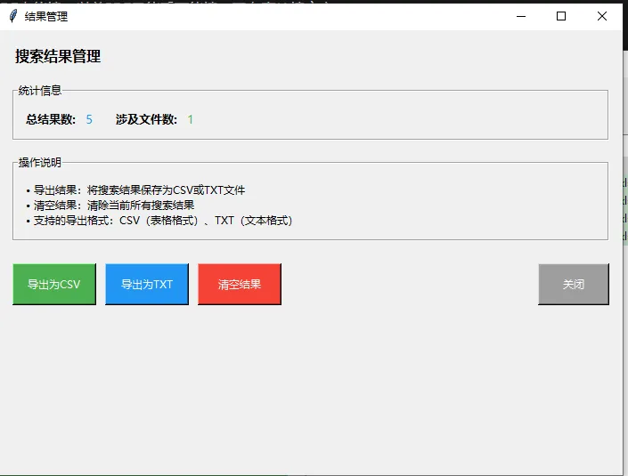 结果直接复制:找到关键词后,右键”复制匹配内容”,粘贴到邮件里就行。还可以支持导出为csv或者txt。