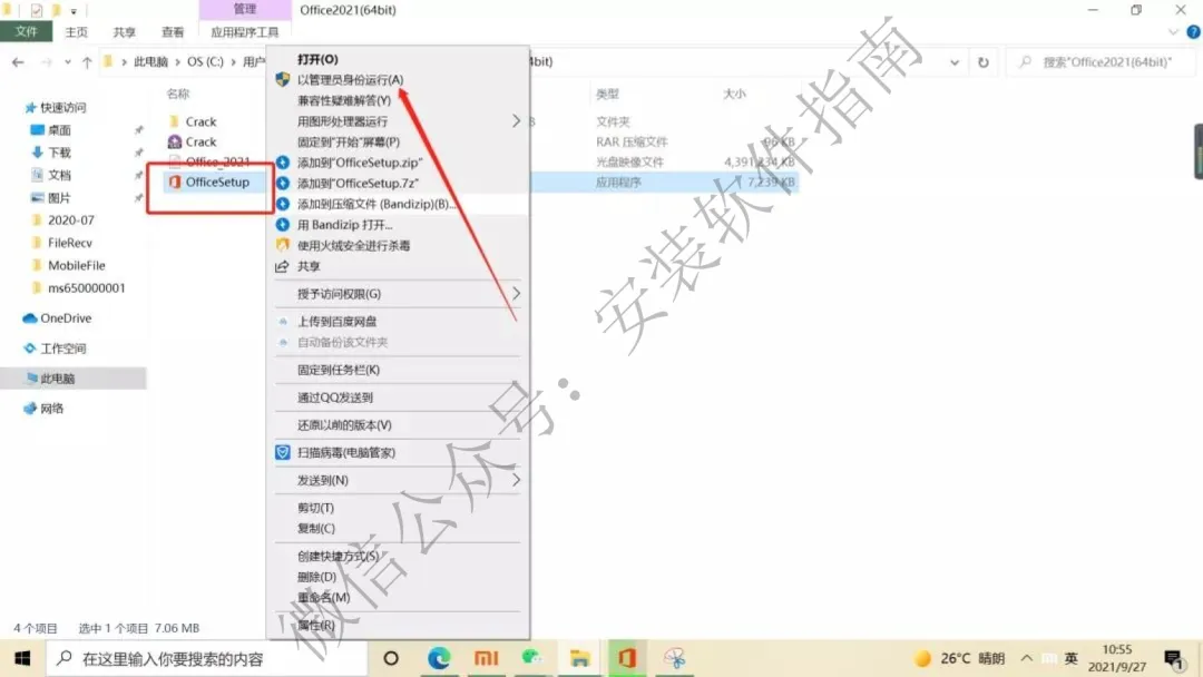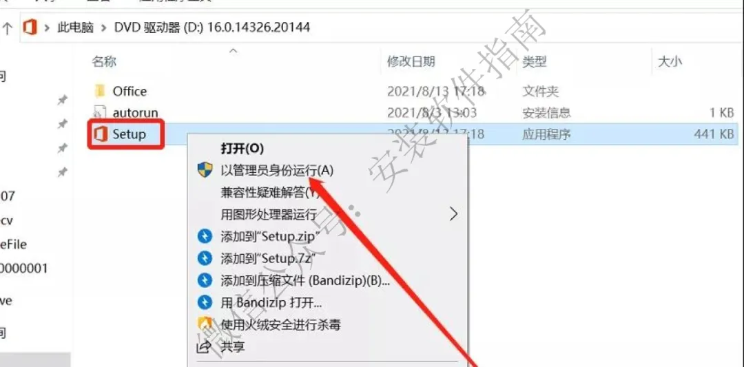 7.返回安装包文件夹,鼠标右击OfficeSetup,点以管理员身份运行