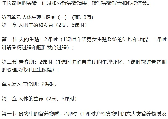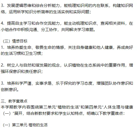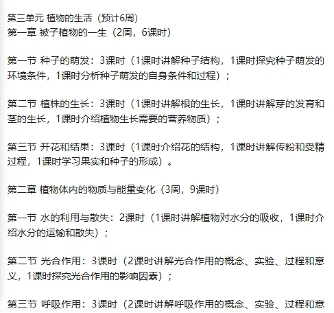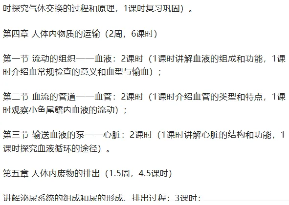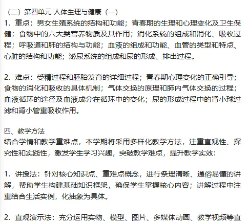 新教材人教版七年级生物学下册教学计划(附免费下载语数英史地政生电子版)
