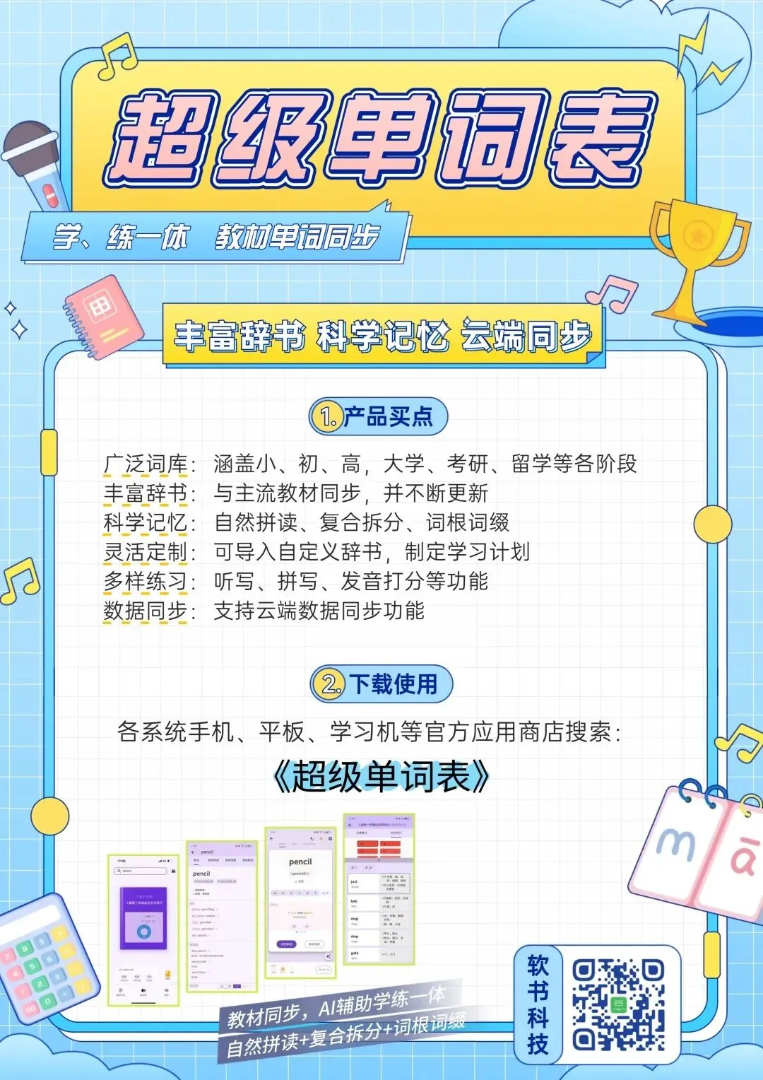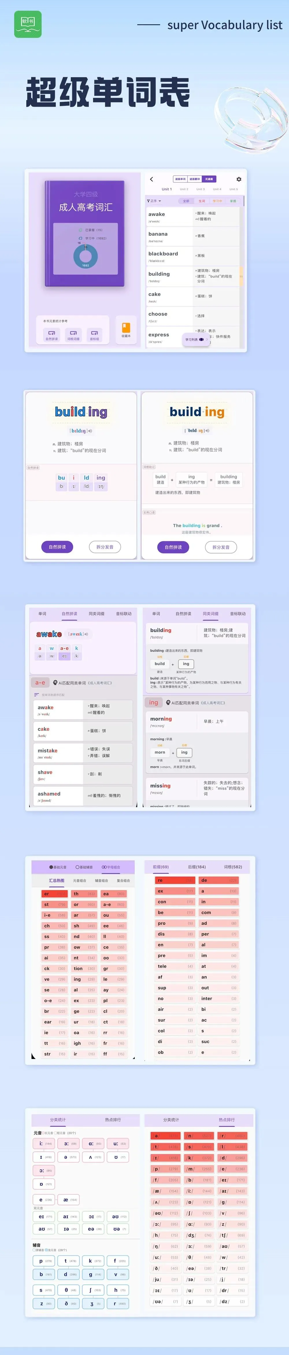①这是一款与教材同步的背单词软件,学练一体化,通过自然拼读+复合拆分法+词根词缀这种科学的方法来辅助记忆单词,再对此进行拼读训练,来大大提高背单词的效率。