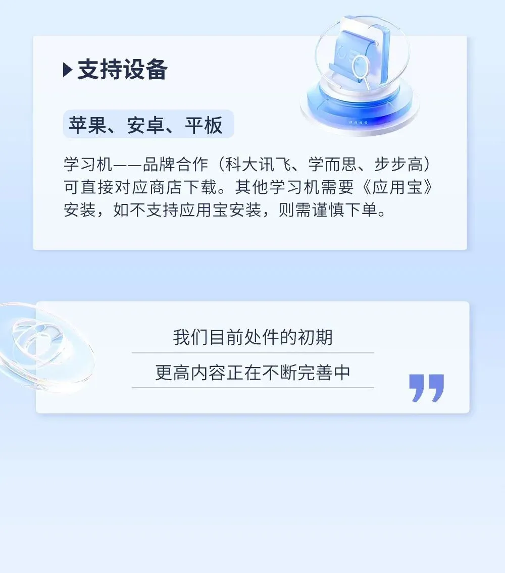 2、支持学习机—学而思、步步高、希沃、读书郎可直接在应用商店下载, 科大讯飞(需要在家长端 [讯飞AI] app–应用中心 下载更新)。