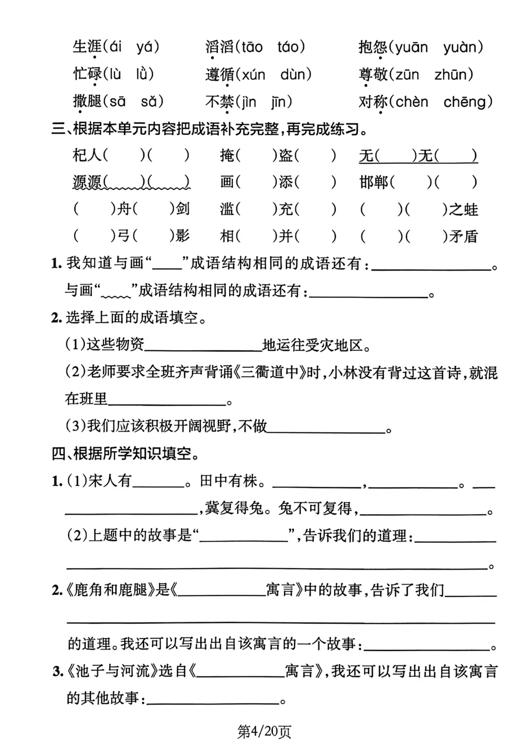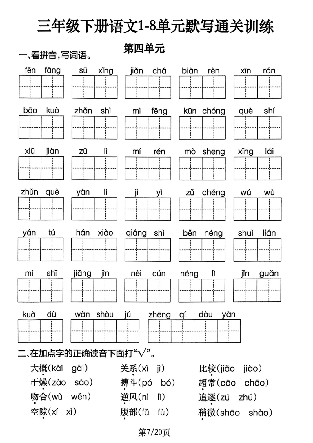 今天为大家分享《三年级下册单元默写通过练习》有答案,电子版可打印