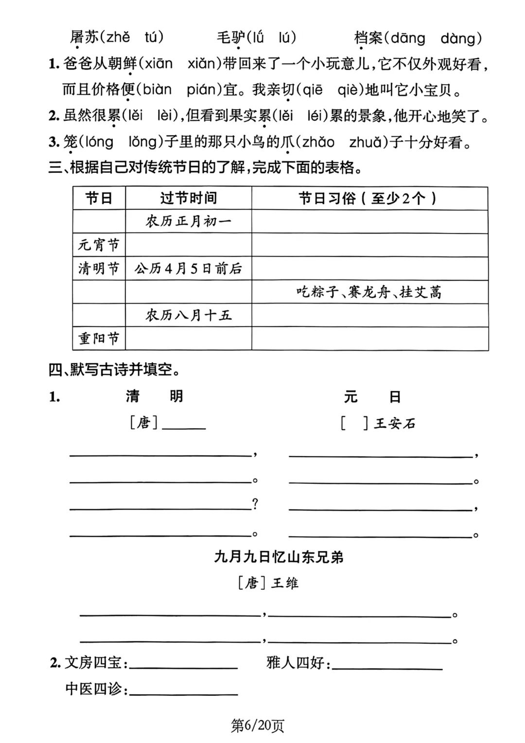 《三年级下册单元默写通过练习》有答案,电子版可打印