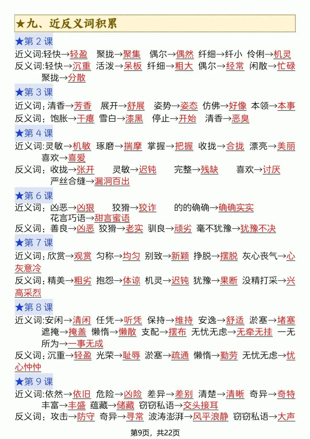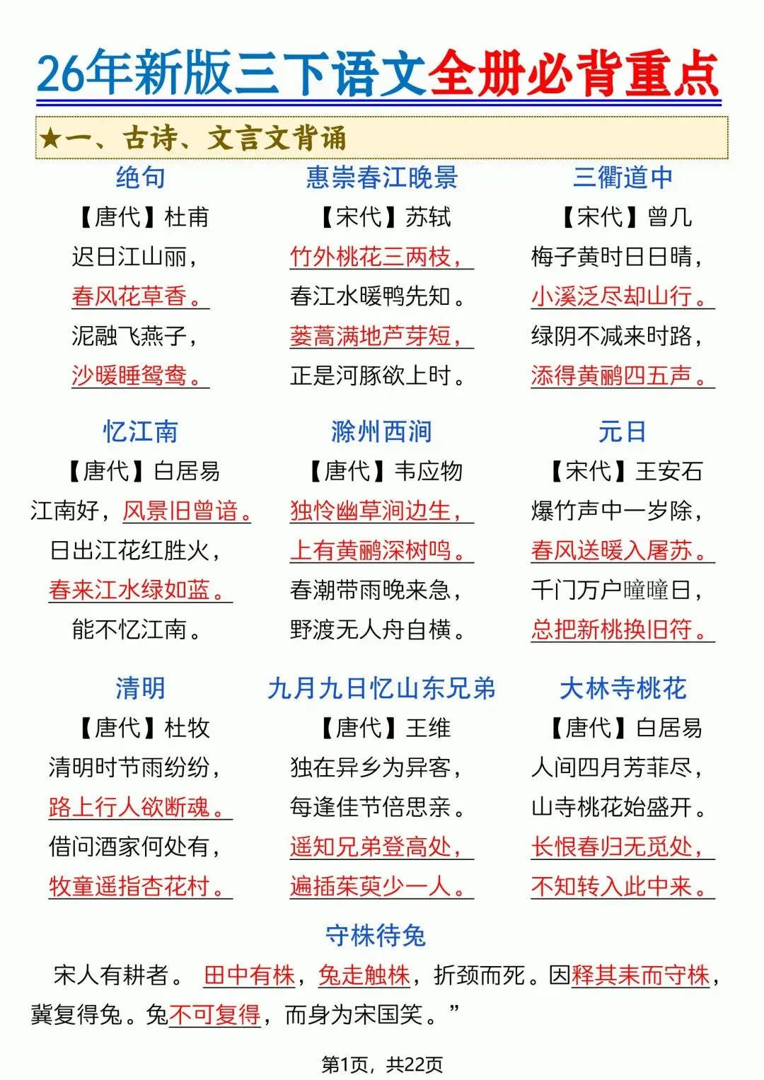 三年级语文下册全册必背重点内容 (电子版可打印)