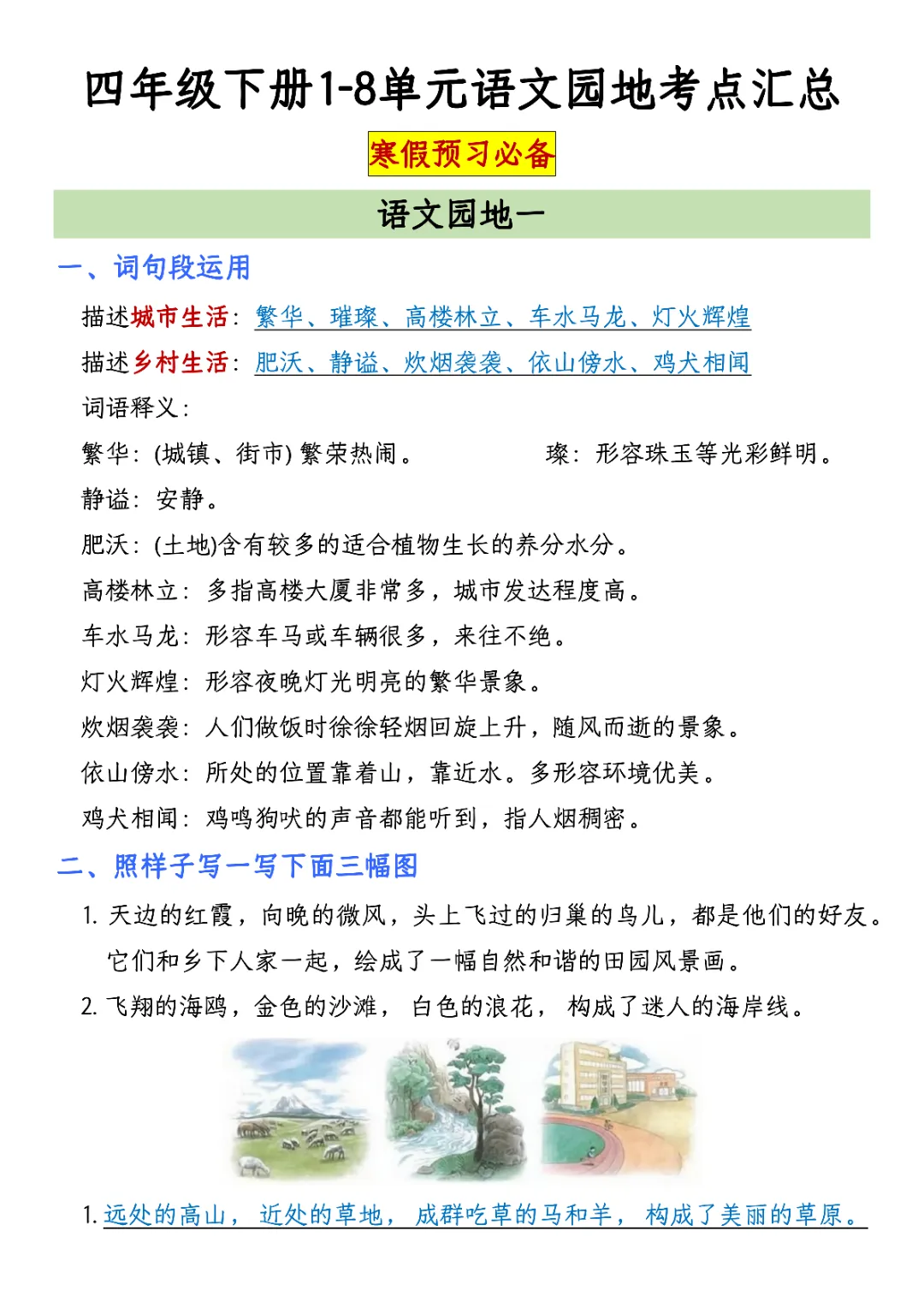 2026年四年级下册语文园地考点汇总|电子版可打印