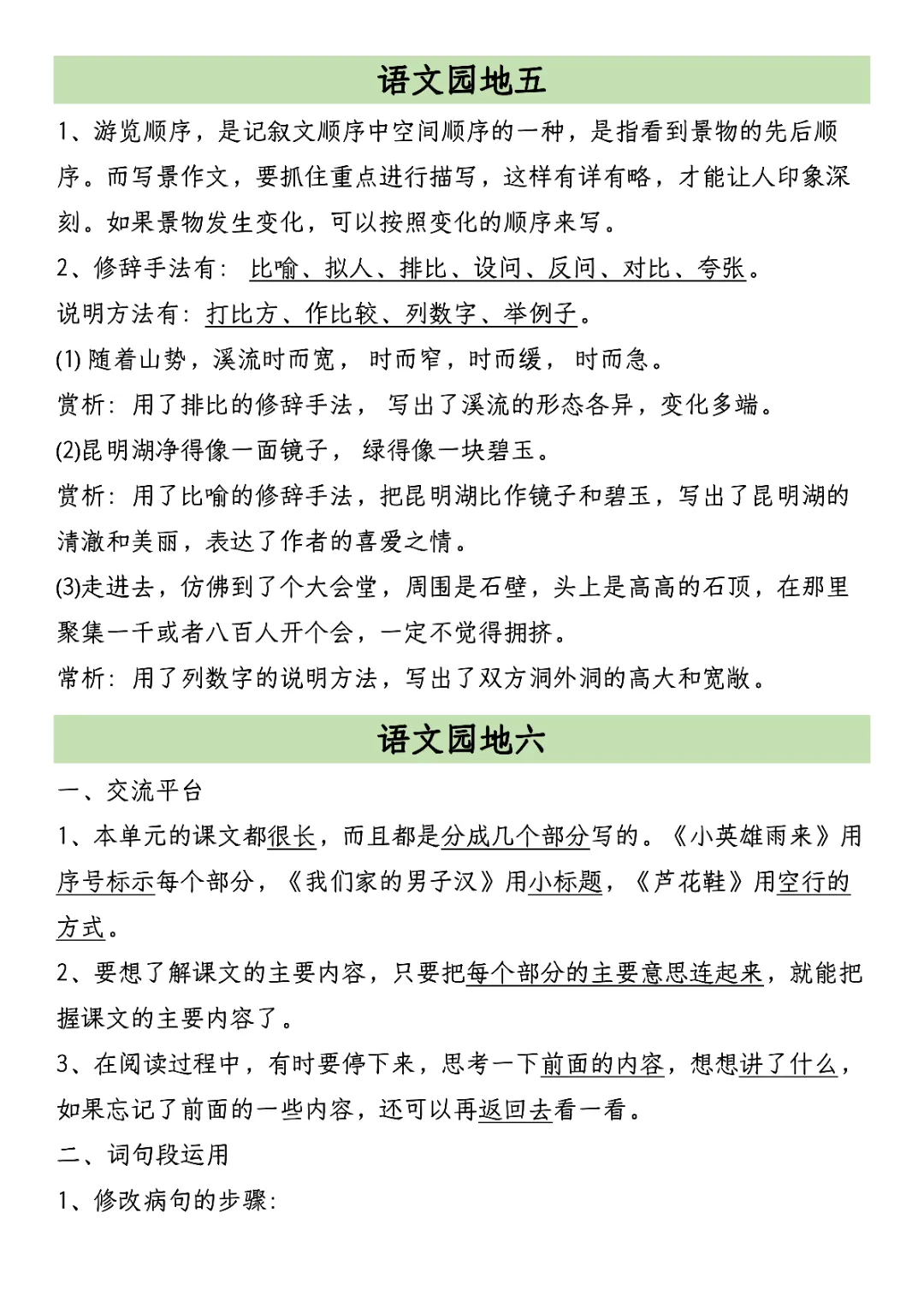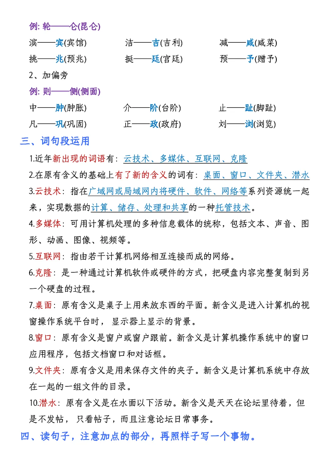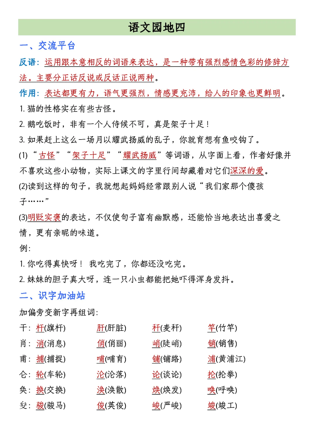 2026年四年级下册语文园地考点汇总(电子版可打印)