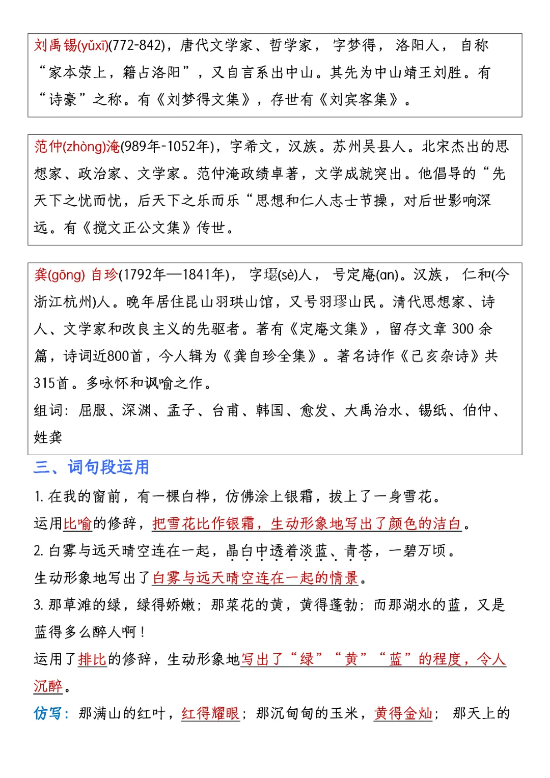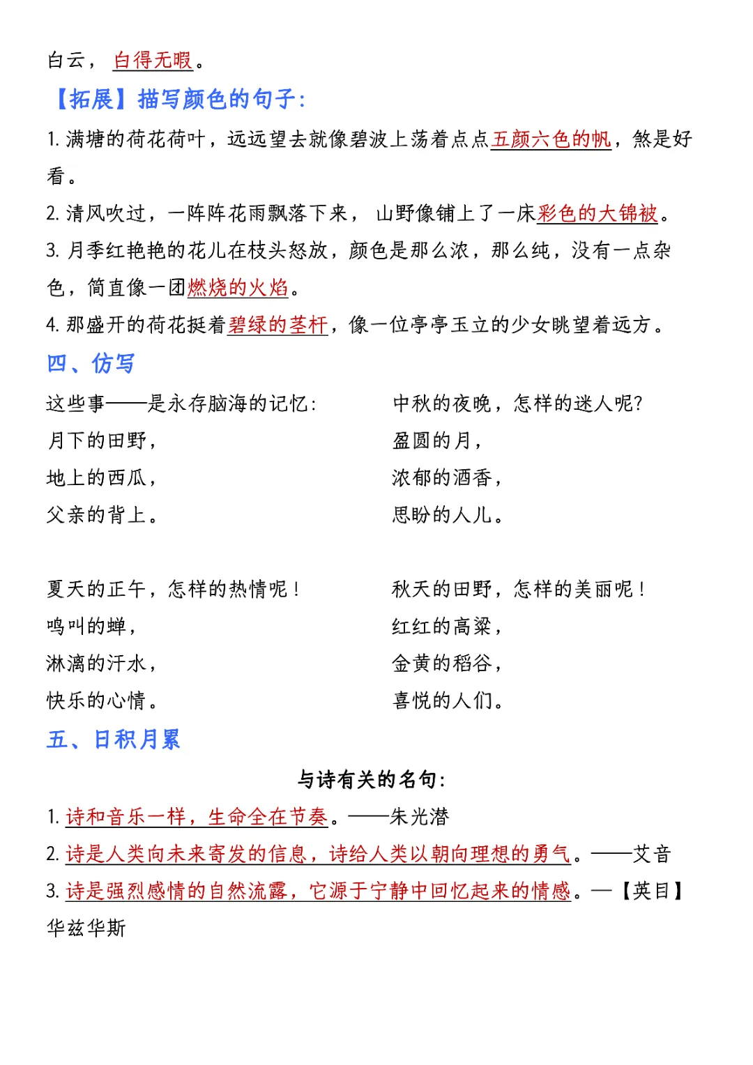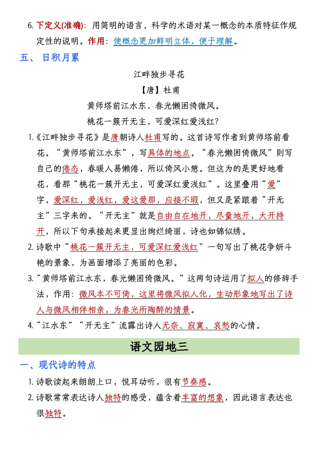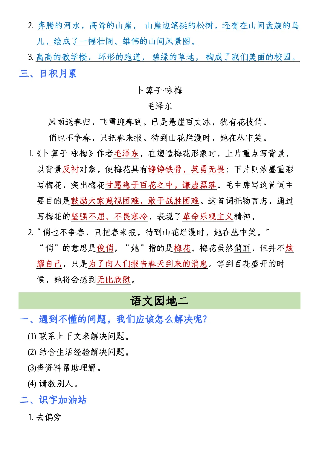 2026年四年级下册语文园地考点汇总(电子版可打印)