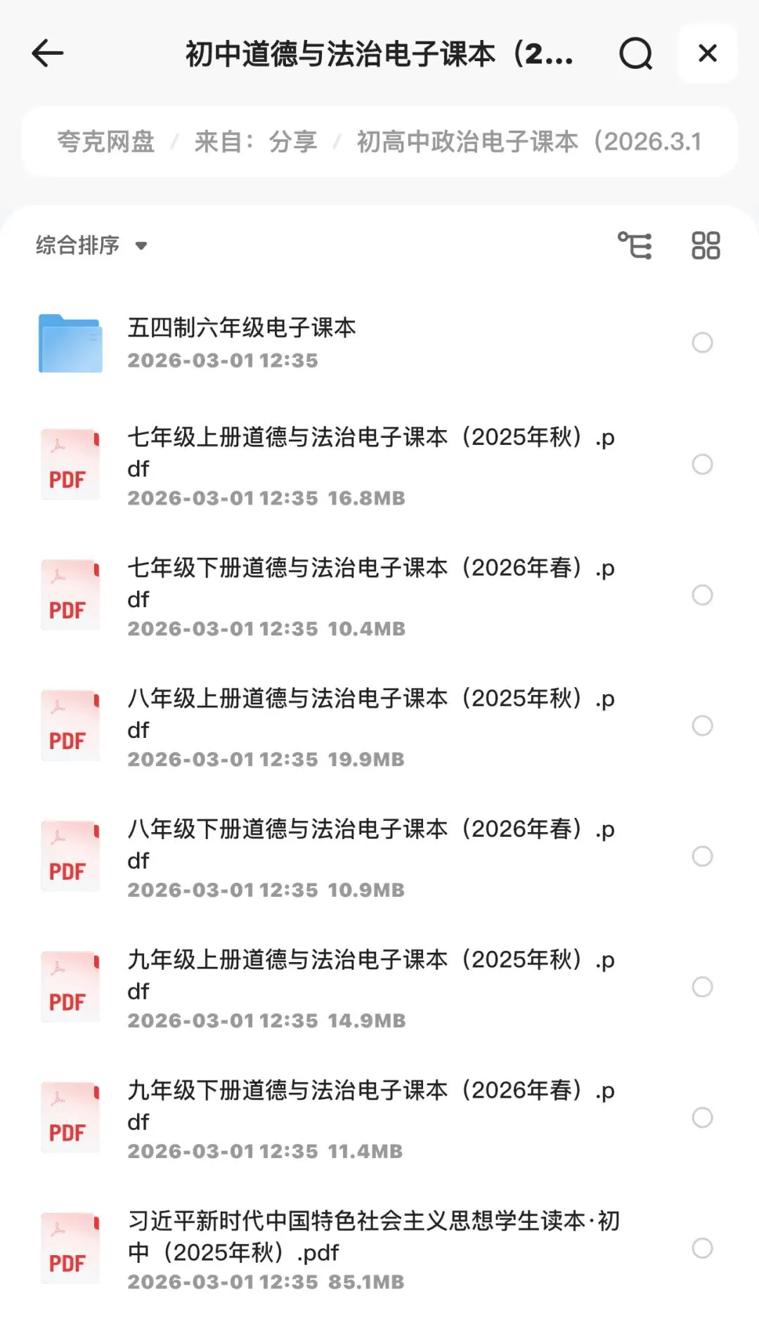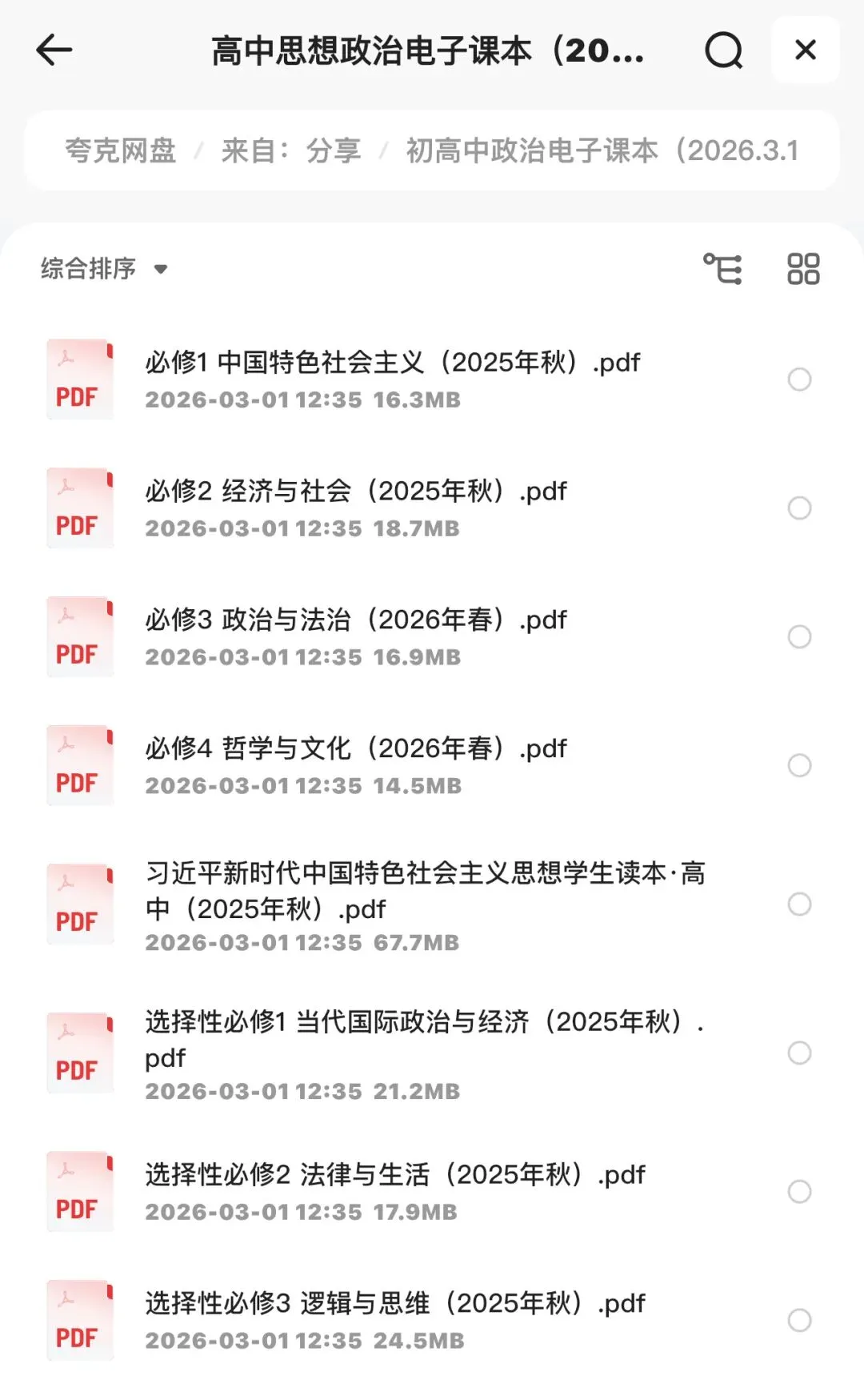 以下为2026年春季最新(3.1日更新)的人教版初高中政治电子版教材分享!