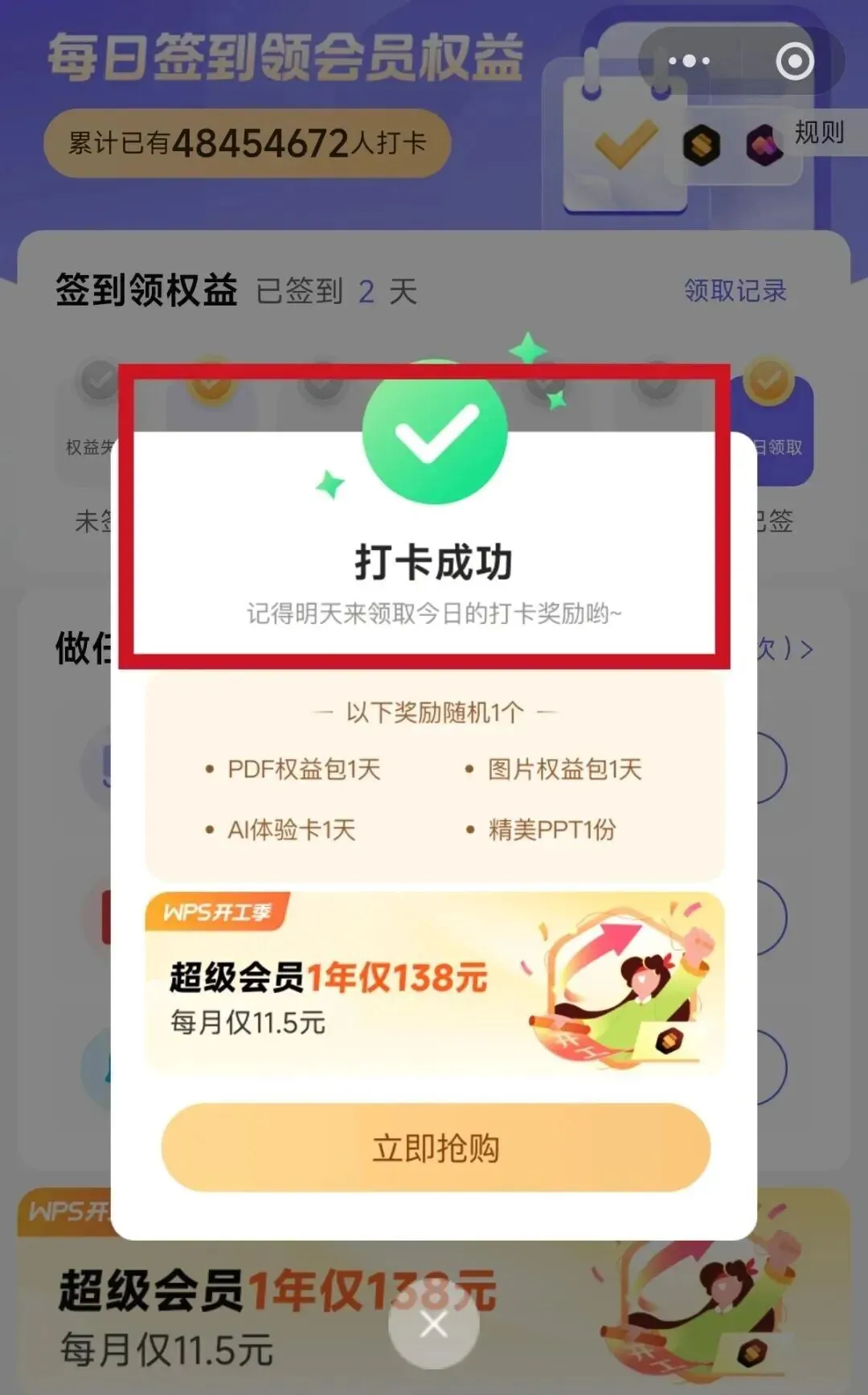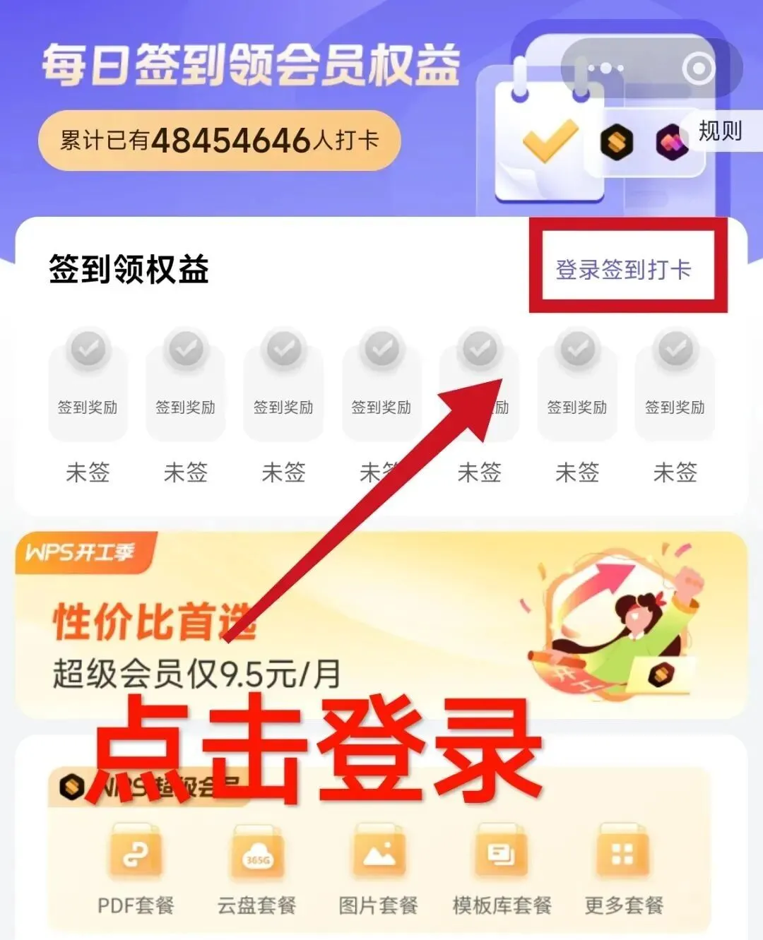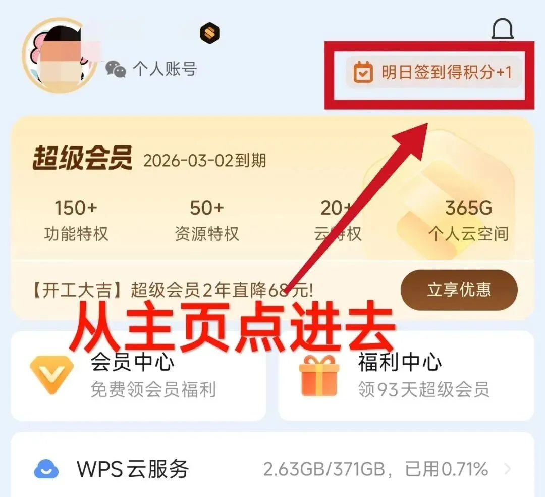 方式一:WPS内签到领会员