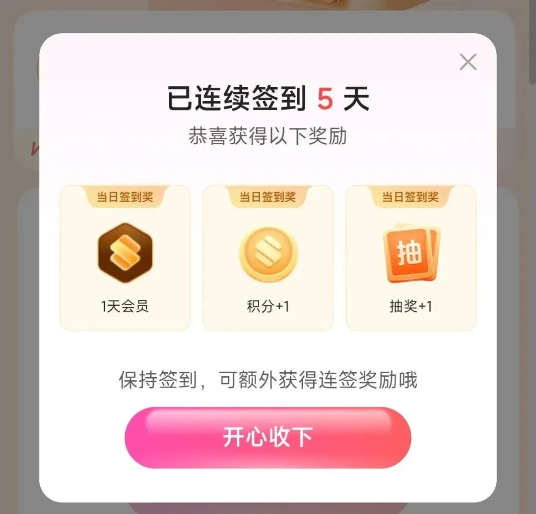 点击「点击签到」,领取当日会员 / 积分。 -