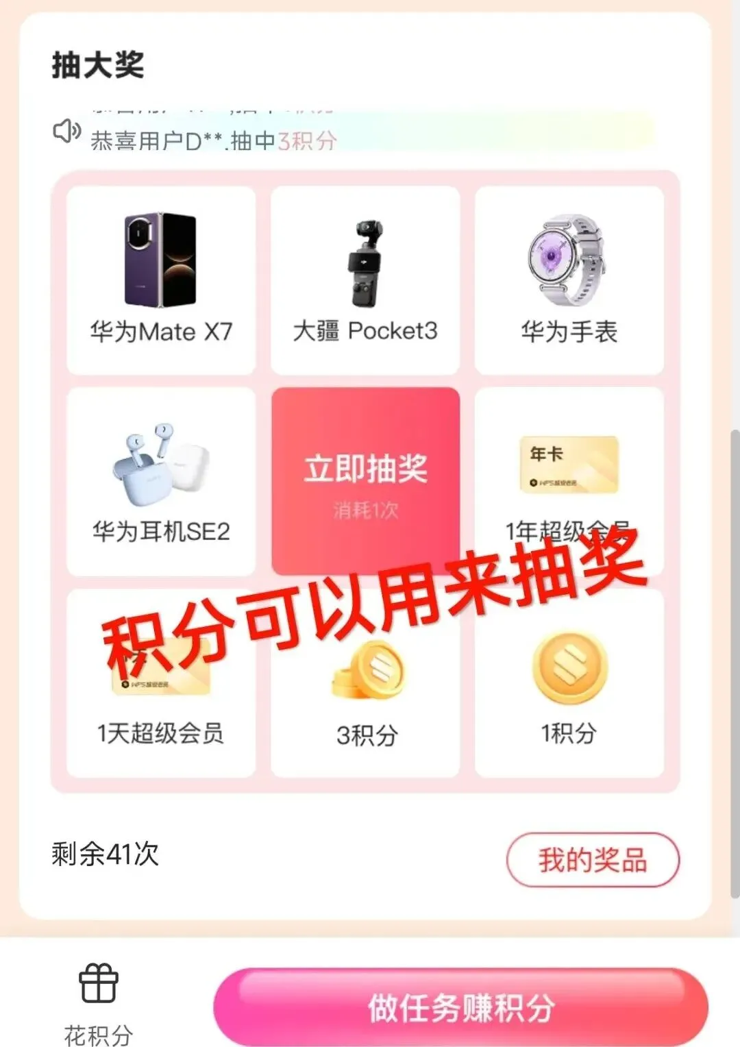 用积分在「积分兑好礼」兑换会员或抽奖。