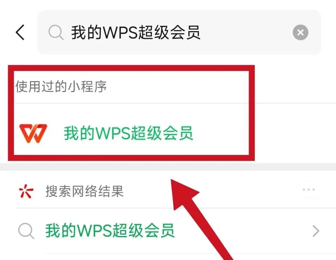微信搜索「我的 WPS 超级会员」小程序并进入。 -