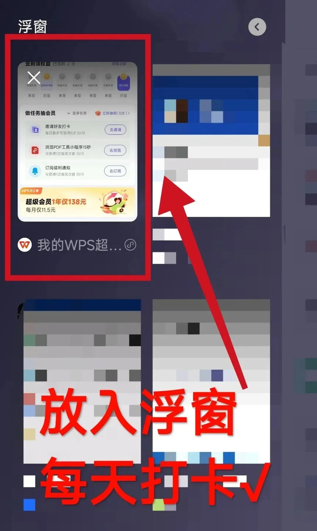 将小程序添加到浮窗,方便每日打卡。