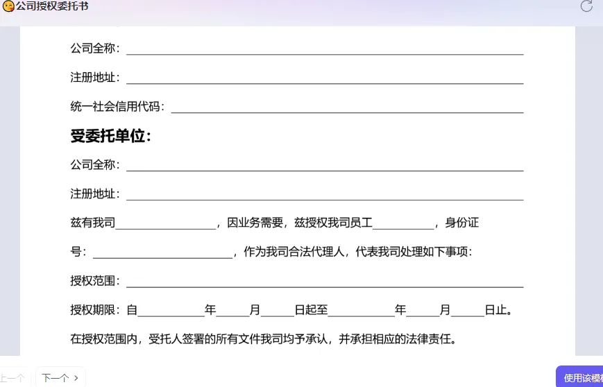 我再举一个例子,现在让你写一个授权委托书,你第一时间想到的是什么?