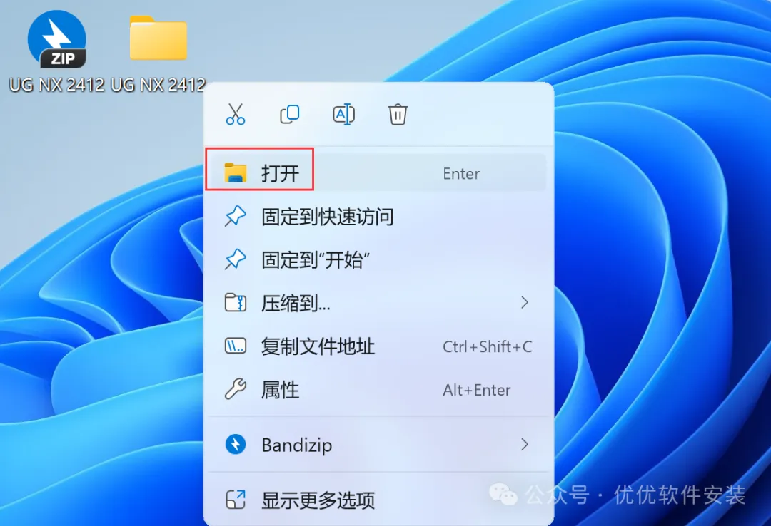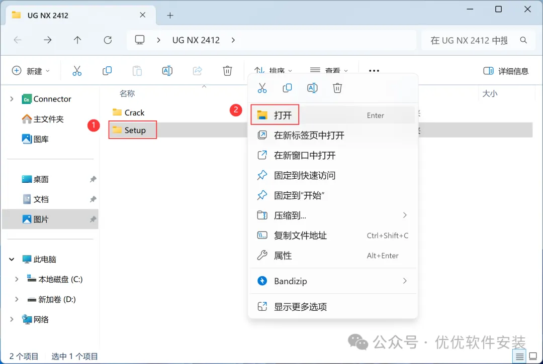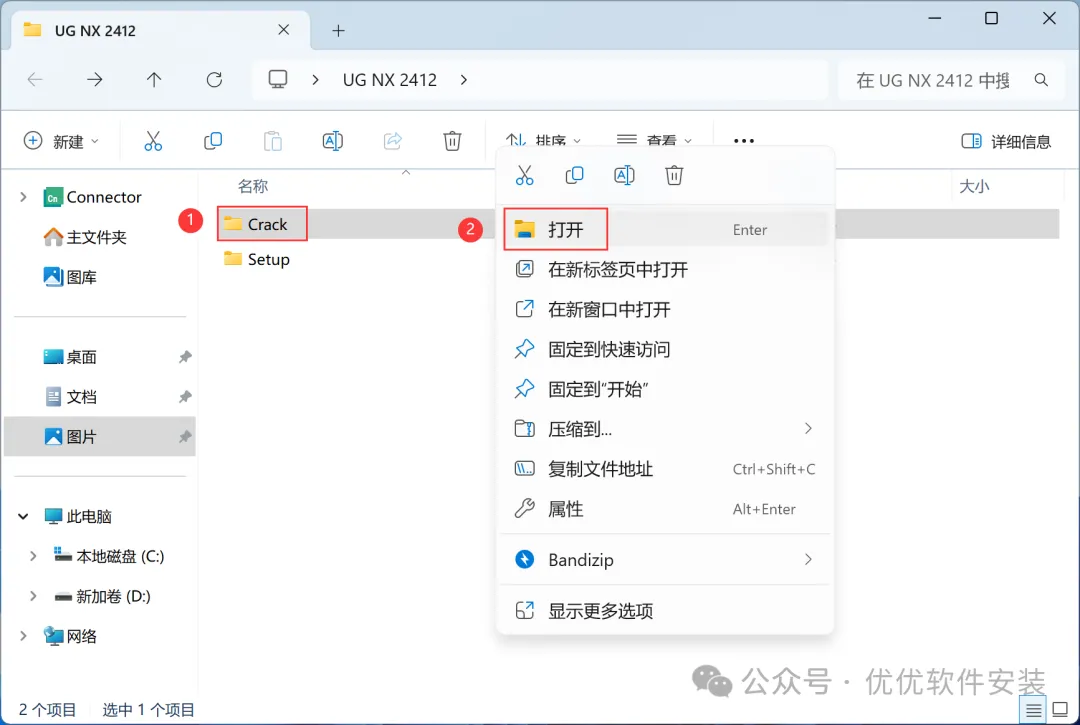 1、下载UG NX 2412软件安装包到电脑上,右键选择【解压到UG NX 2412\】