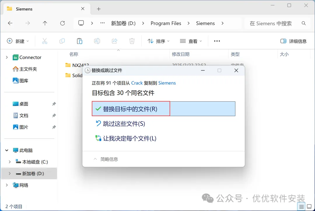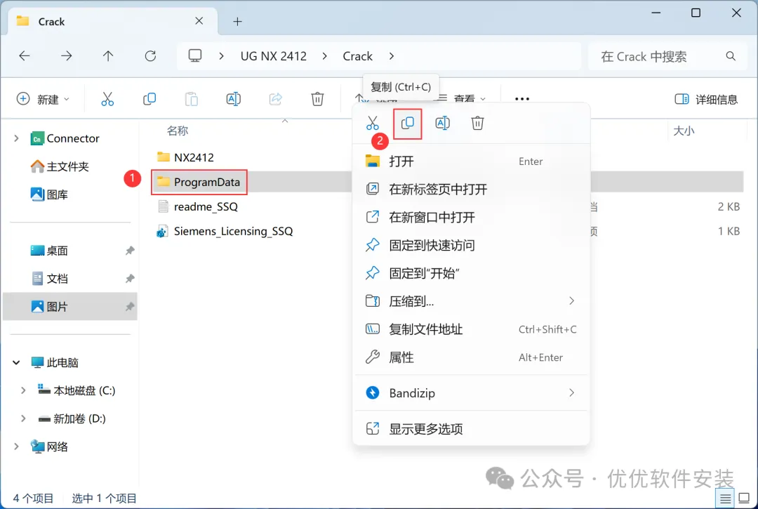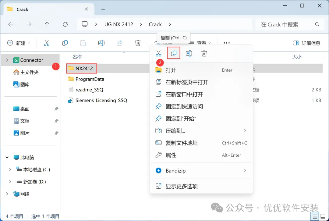 28、回到Crack文件夹,找到【NX2412】文件夹,右键点击【复制按钮】