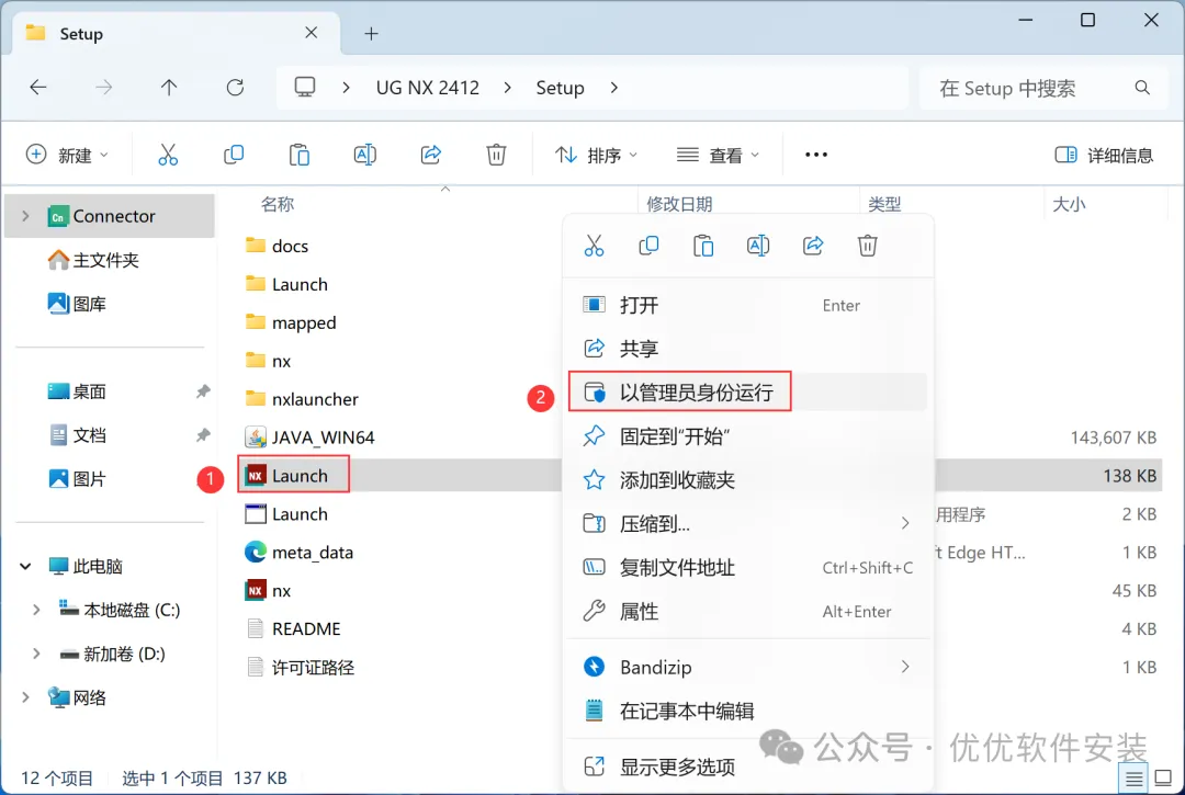 15、回到Setup文件夹,找到【Launch】应用程序,右键选择【以管理员身份运行】它