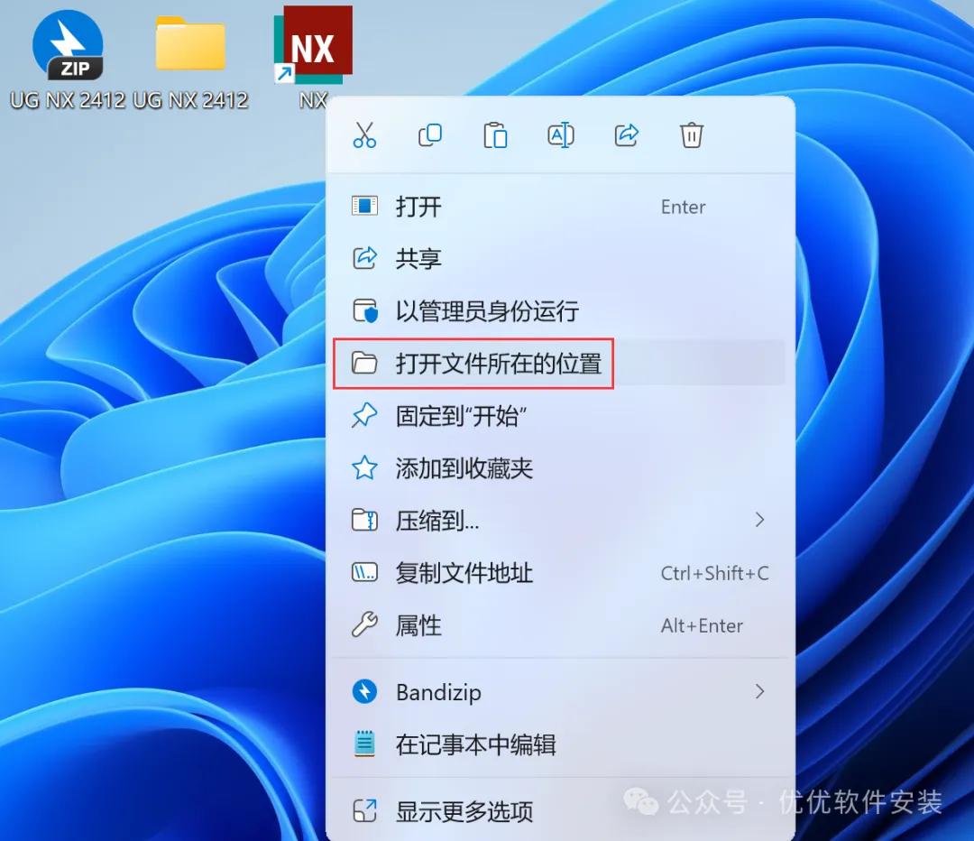 30、右键桌面上的【NX软件图标】,点击【打开文件所在的位置】