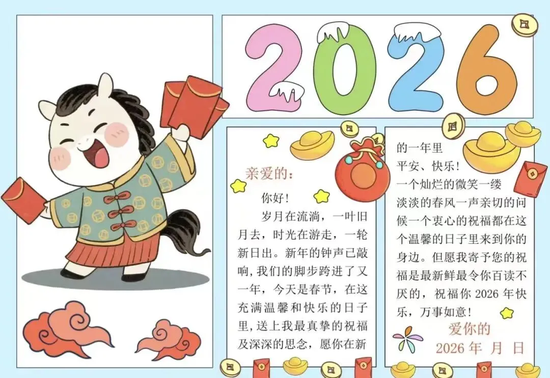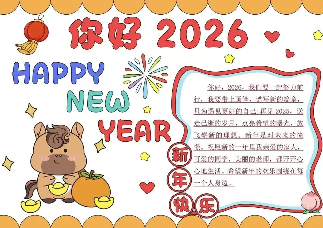 2026 新春手抄报,可参考打印 新春习俗手抄报贴年红,即是贴春联、门神、 年画、福字、横批、窗花等的统称,因这些是过年时贴的 红色喜庆元素,所以统称为“贴 年红”。贴年红是中华传统过年习 俗,它反映了人民大众的风俗和 信仰,增添喜庆的……。 公众号|泊头市金榜题名 关注我掌握最新前沿资讯 【此文章及图片来源于网络 非原创作品 如有侵权 立即删除】