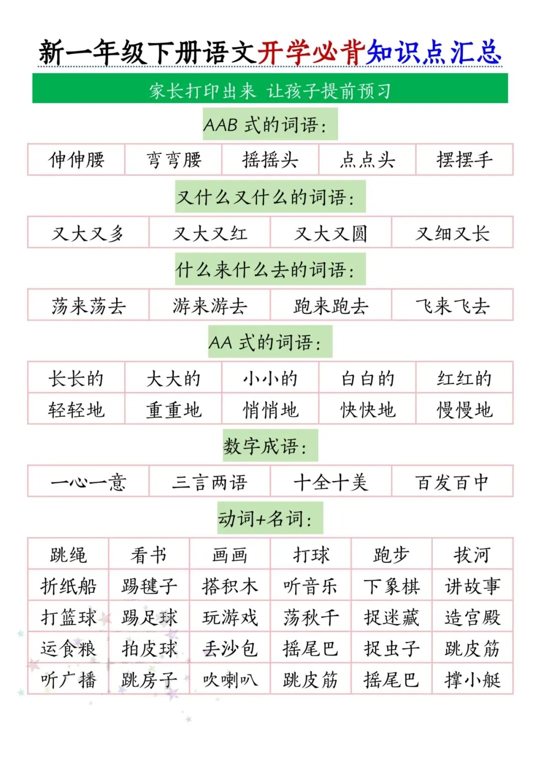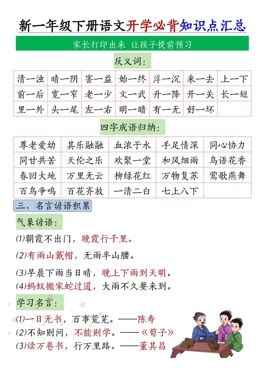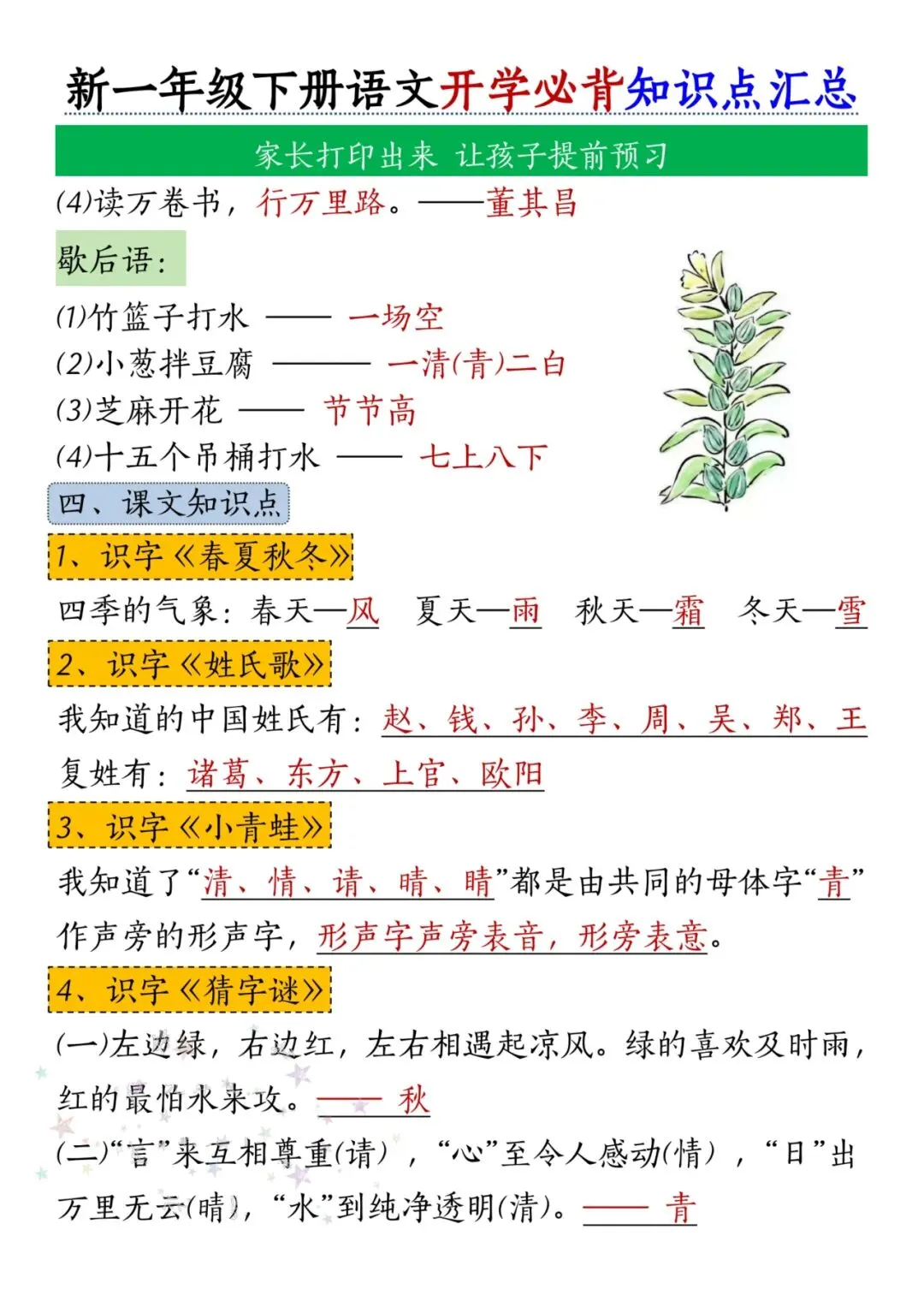 一年级下册语文开学必备知识点汇总【完整电子版可打印】