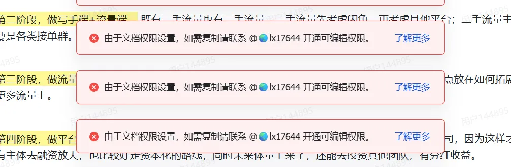 像这种提示需要权限的文档,只要可以阅读,就可以保留原格式复制,无痕变成自己的文档。