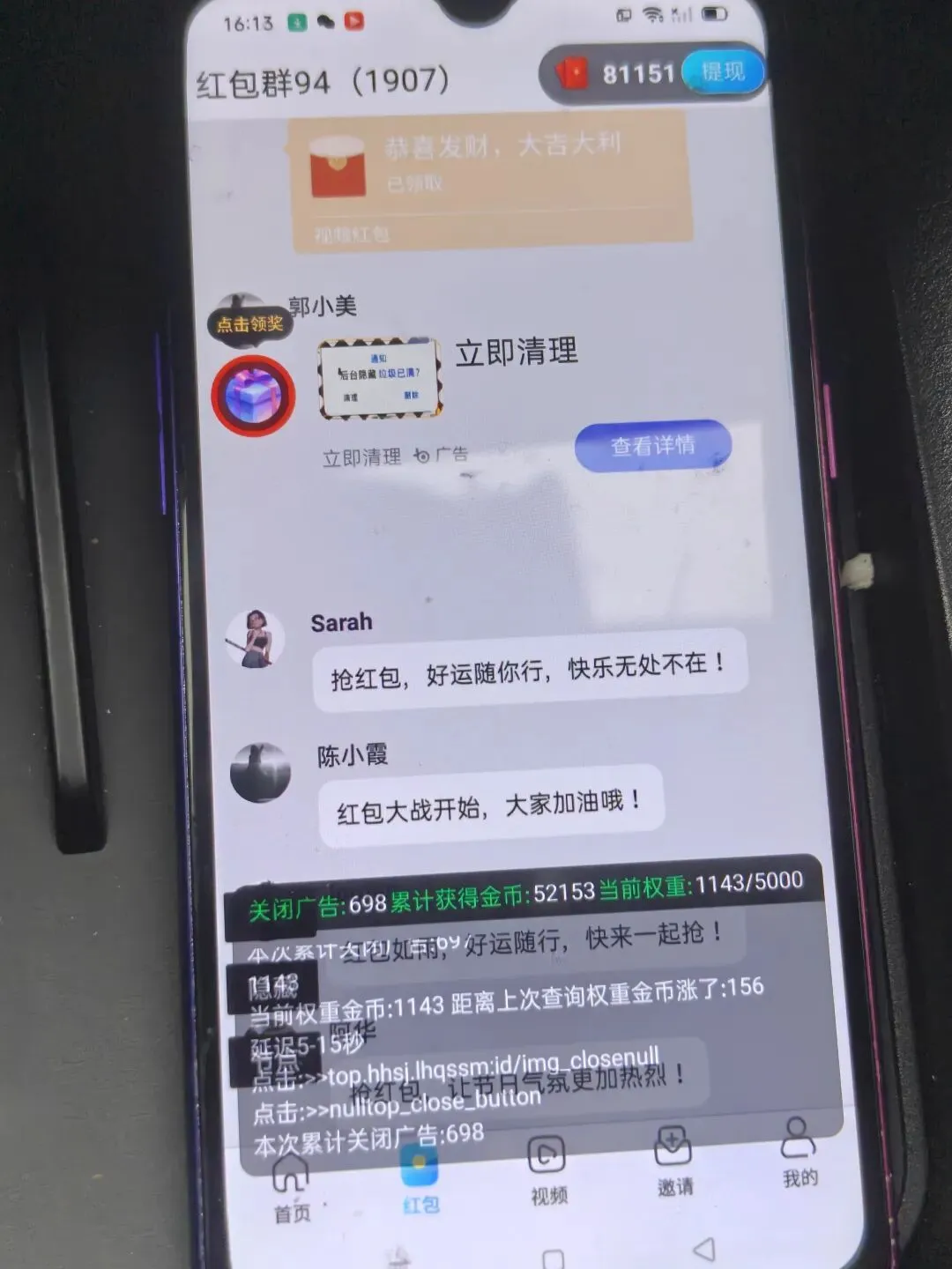 适配的软件,直接上自动化就行,但是自动化终究是自动化,不带任何思维的,就按照指令去执行,如果碰到了快应用那种让人头皮发麻的软件,就可能绕在里面出来,在没有办法的时候软件会自动将应用清理出后台再次进入,好是好,但是容易浪费时间,咱们如果挂着看到了就直接把快应用关了,会效果更好。