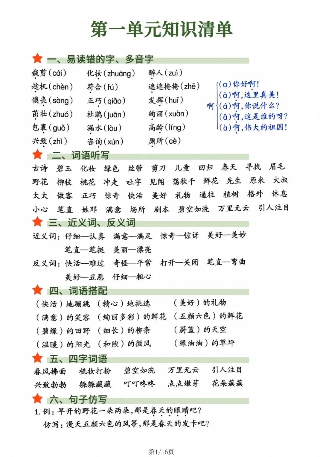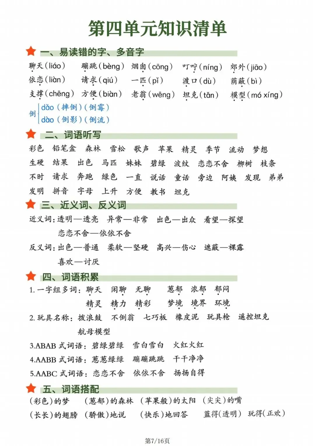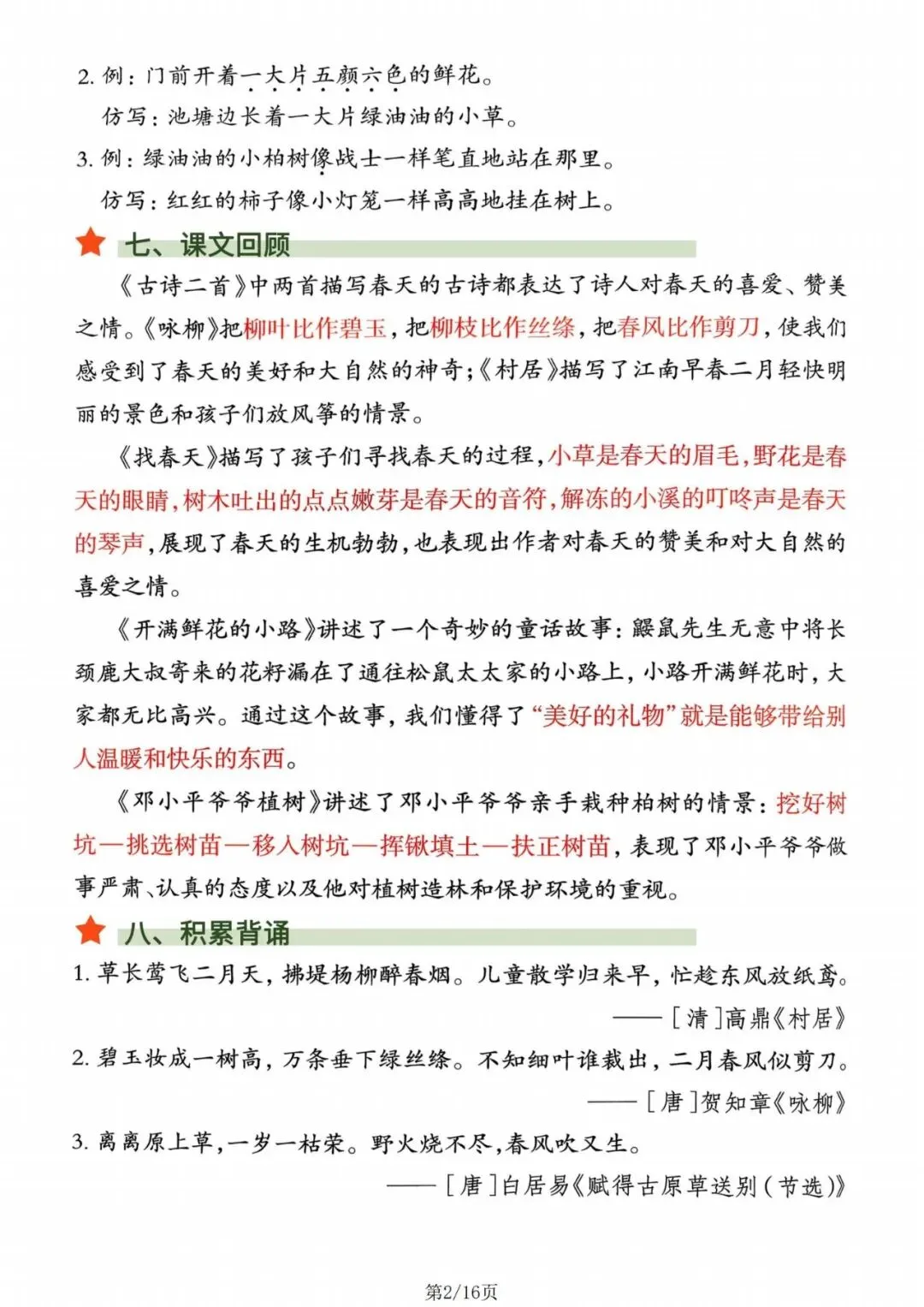 人教版|二年级语文下册知识点归纳总结(可打印)