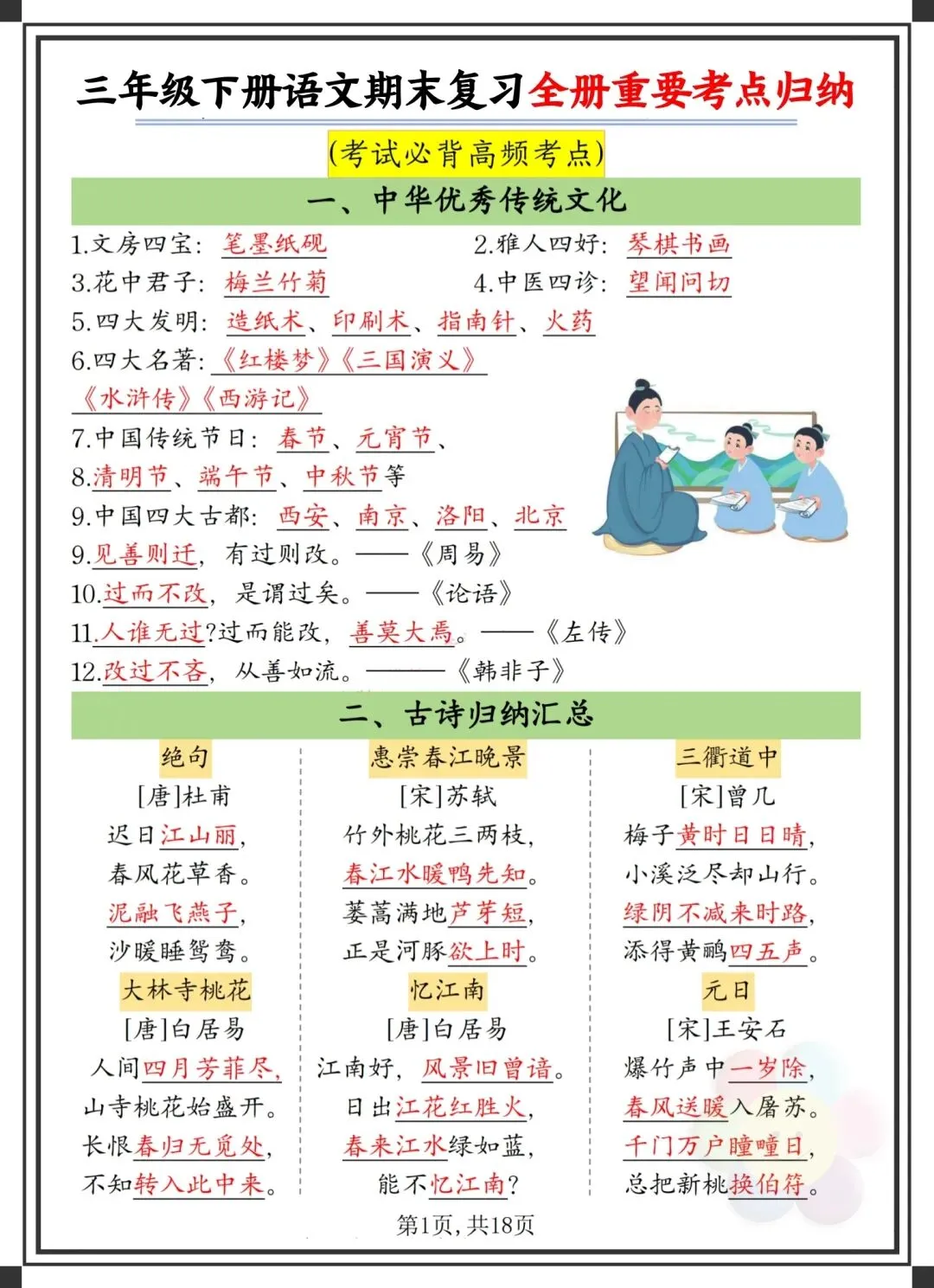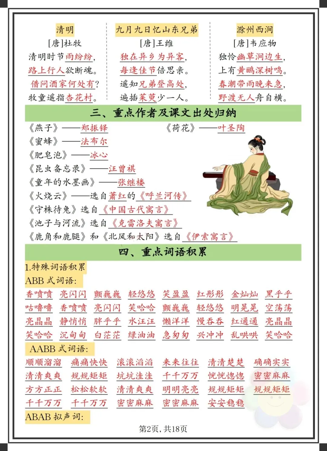 今日为大家更新了最近超火的学习资料,2026年春三年级下册人教部编版语文《1~8单元全册重点知识考点汇总》(详细版)适用于期中期末总复习,高清电子版可打印