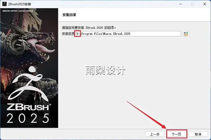6.把安装路径前面的C字母改成D;点击【下一页】