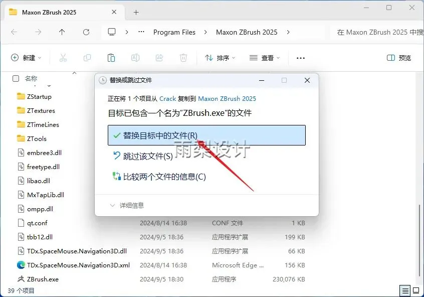 14.点击【替换目标中的文件】