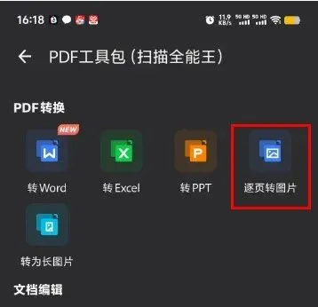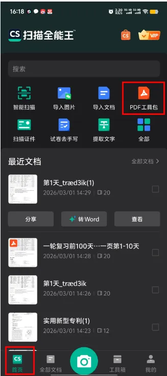 第二步:进入扫描全能王 首页,点击PDF工具包