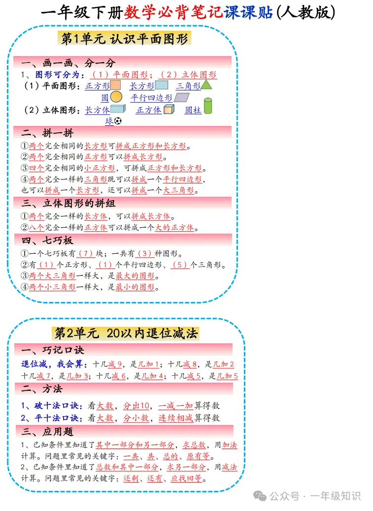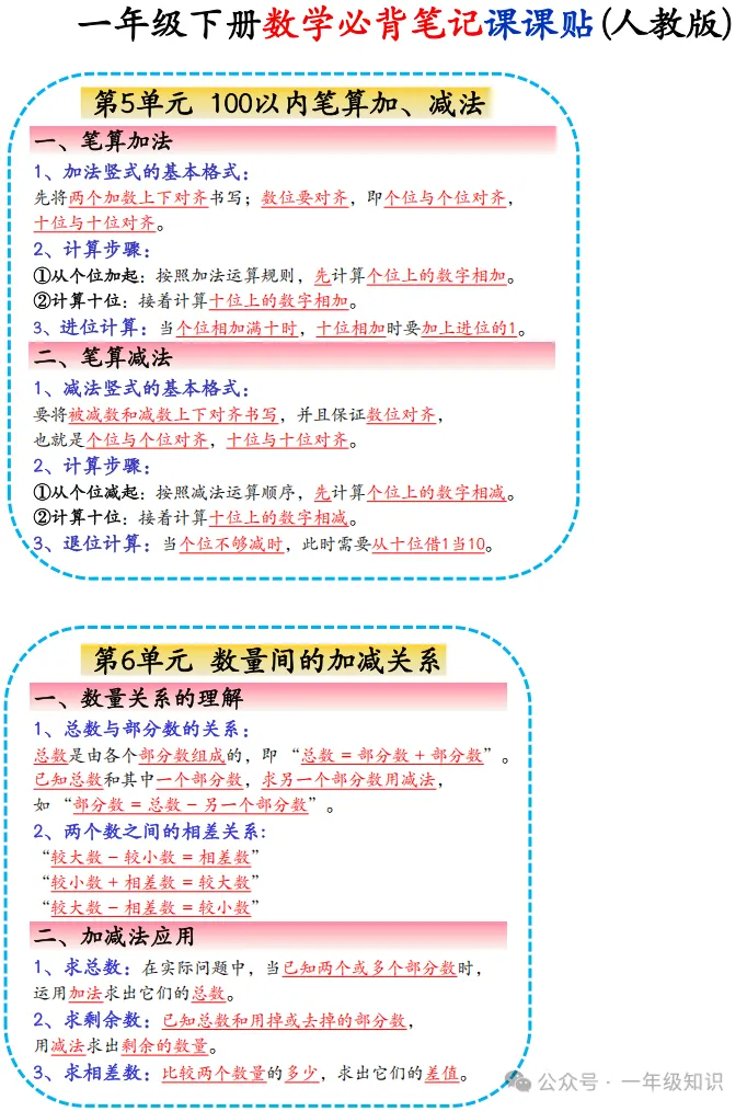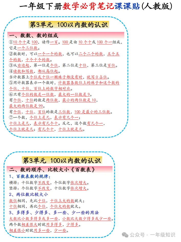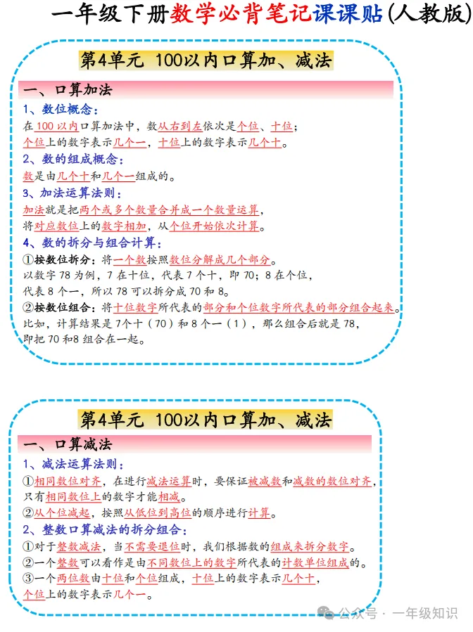 人教版一年级下册数学必背知识点课课贴,可下载打印 注:文章结尾有免费获取电子版步骤 领取完整电子版资料:①点一点右下角的“赞”和“在看”,感谢②在公众号对话框中回复:0301 ↑不会领取资料的请看以上步骤↑