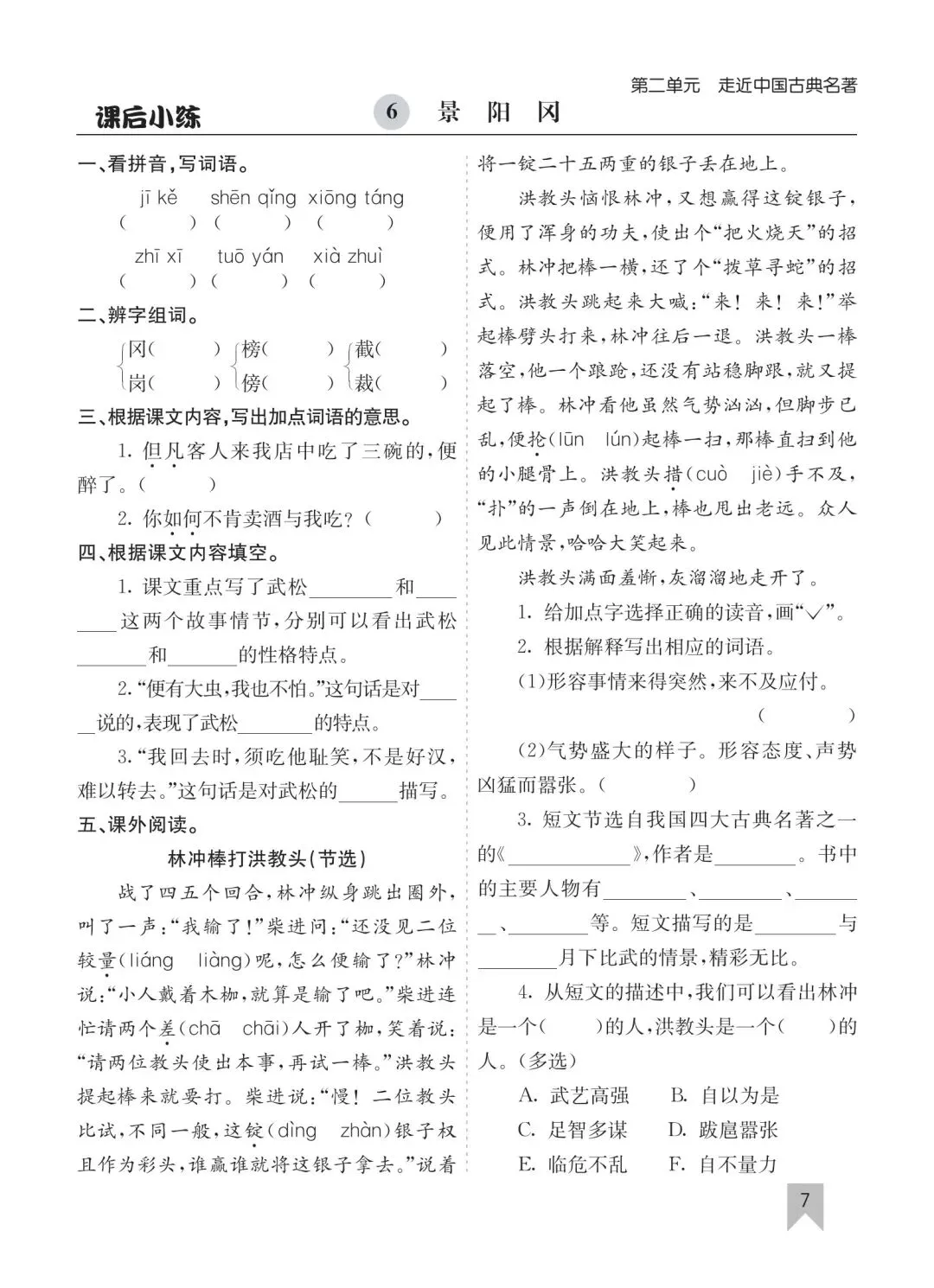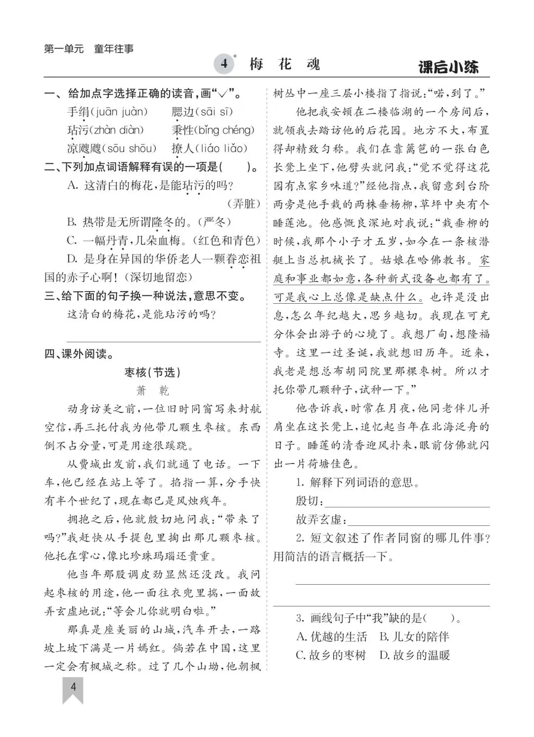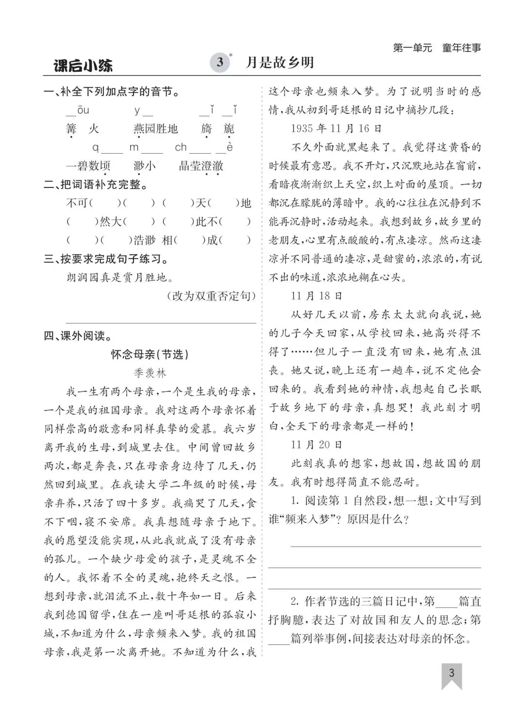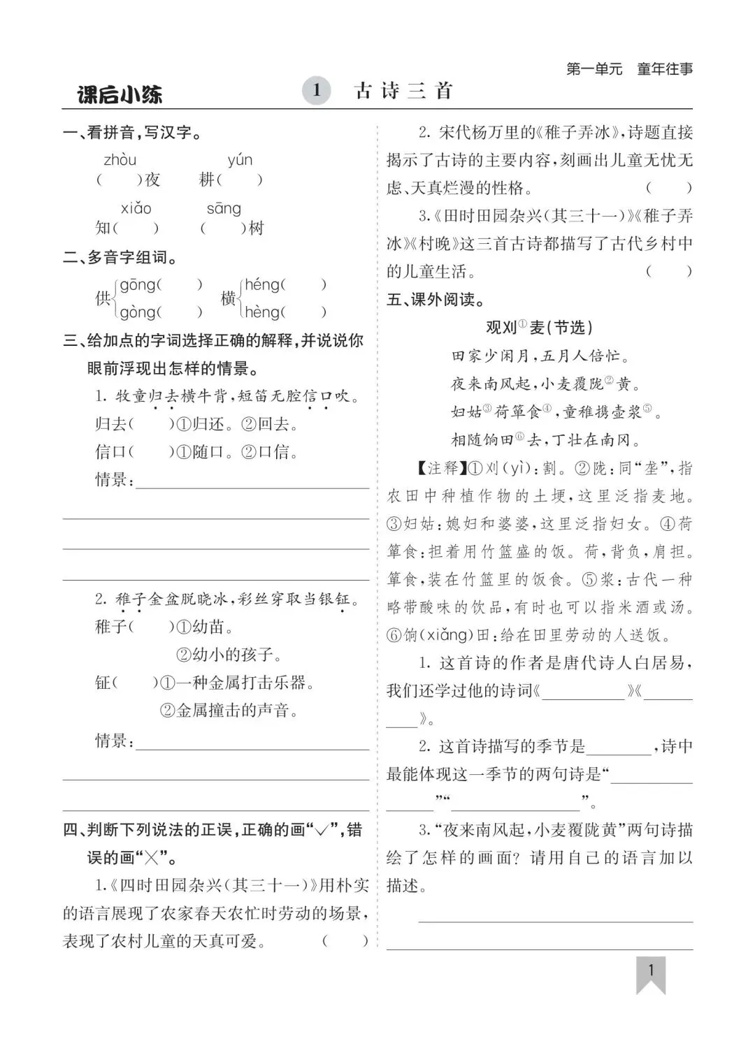 26春五年级下册语文一课一练高清电子版可打印